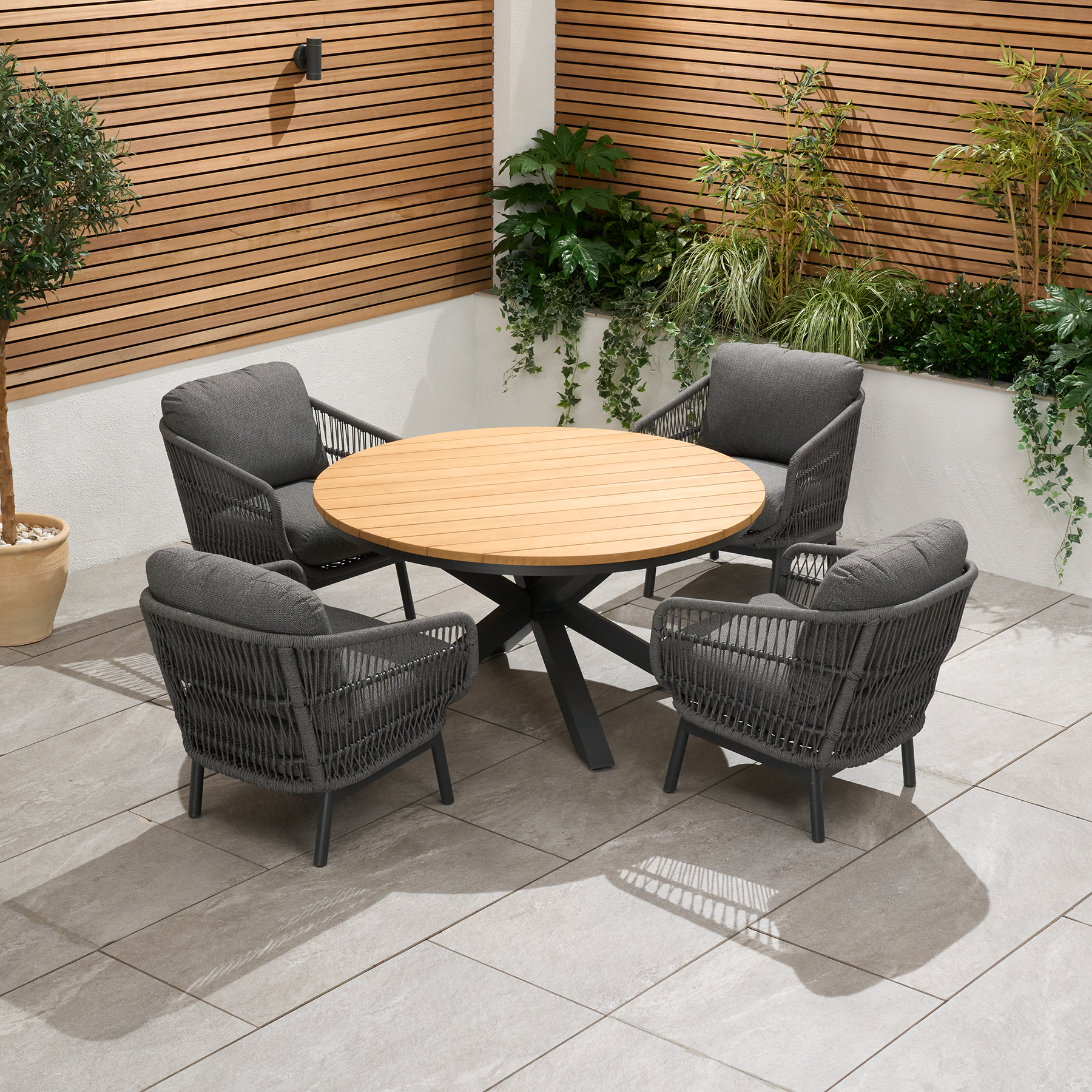 • Showerproof Grey seat and back cushions (store away when not in use)