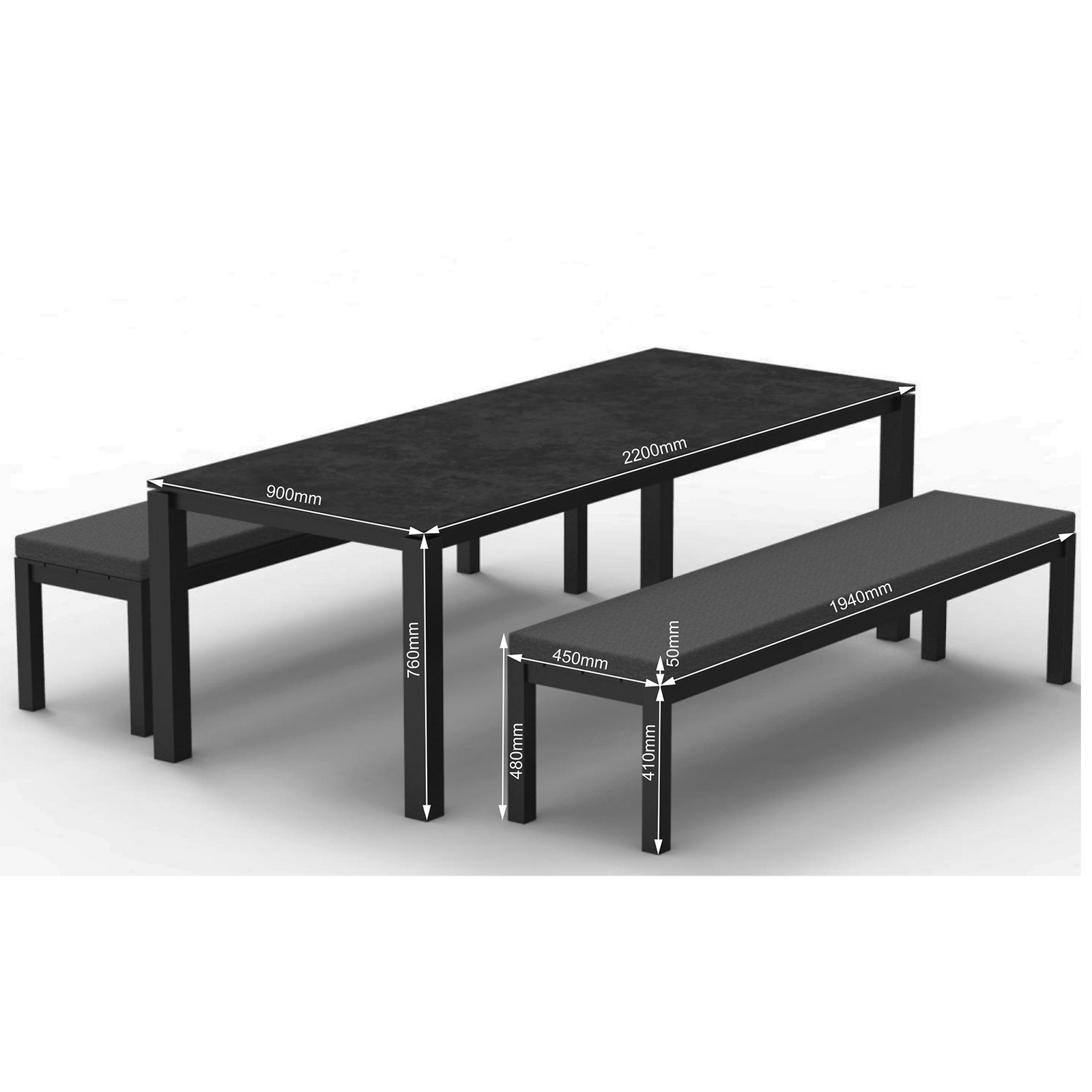 • Rectangular Powder Coated Grey Aluminium Table with a 6mm Dark Ceramic Glass Look Top