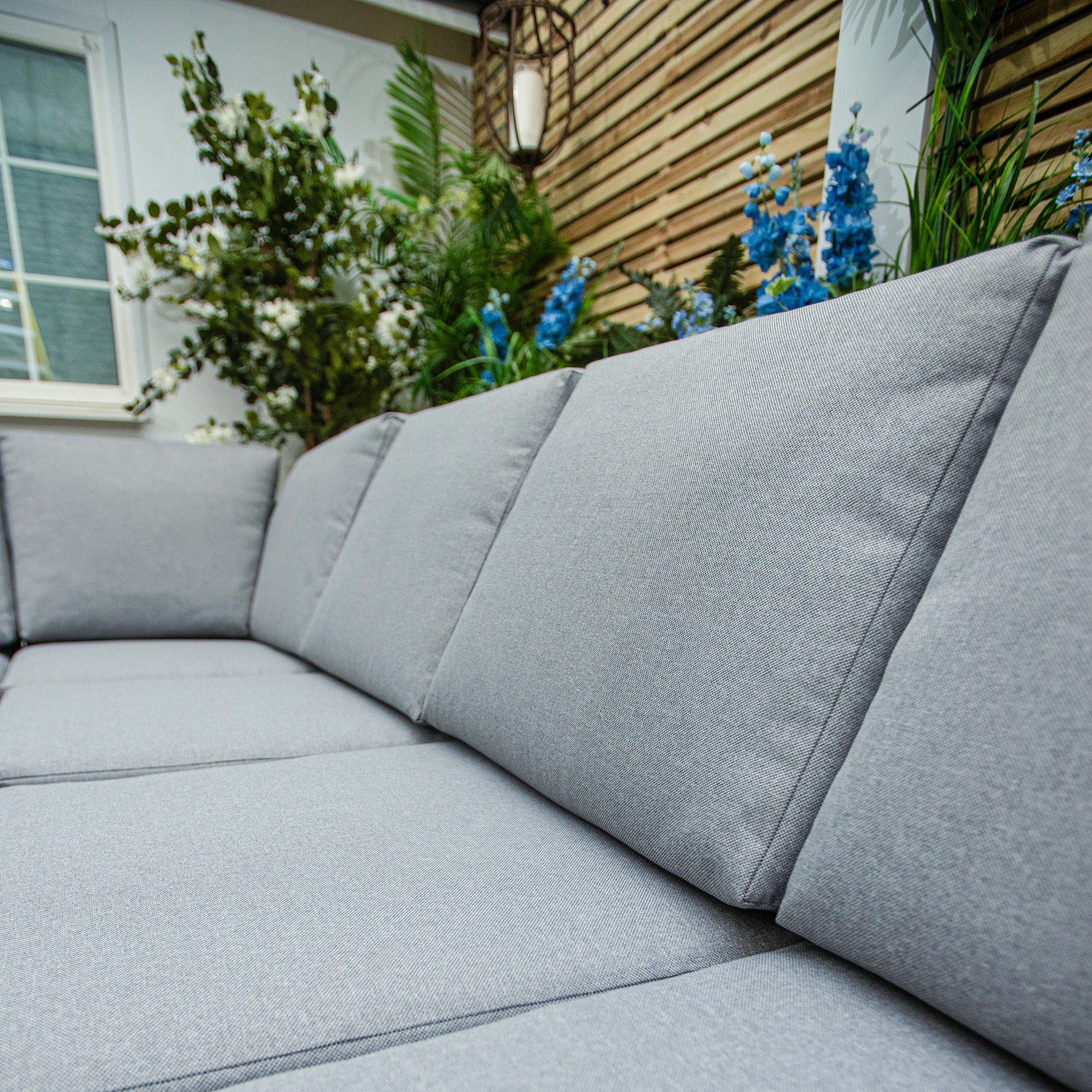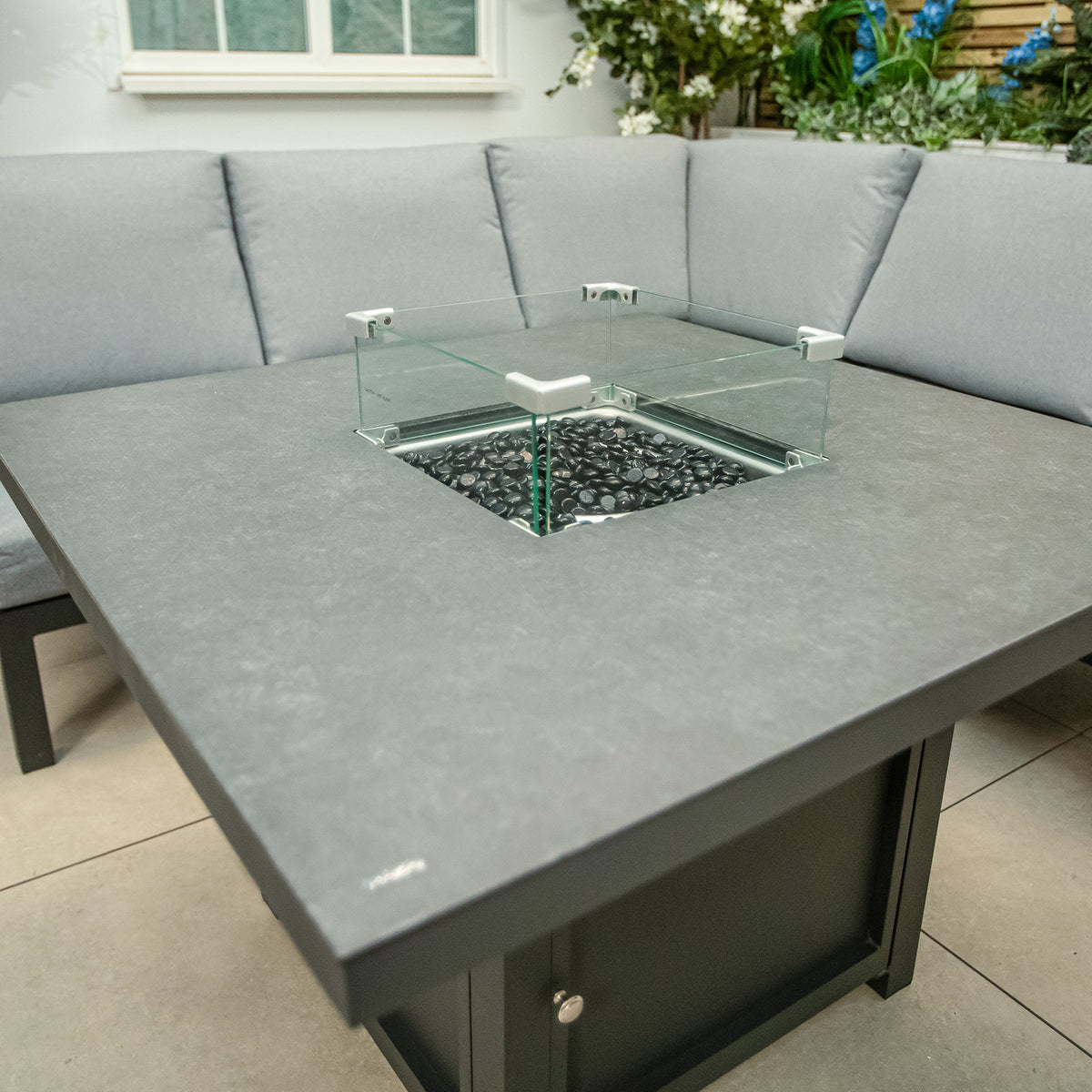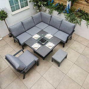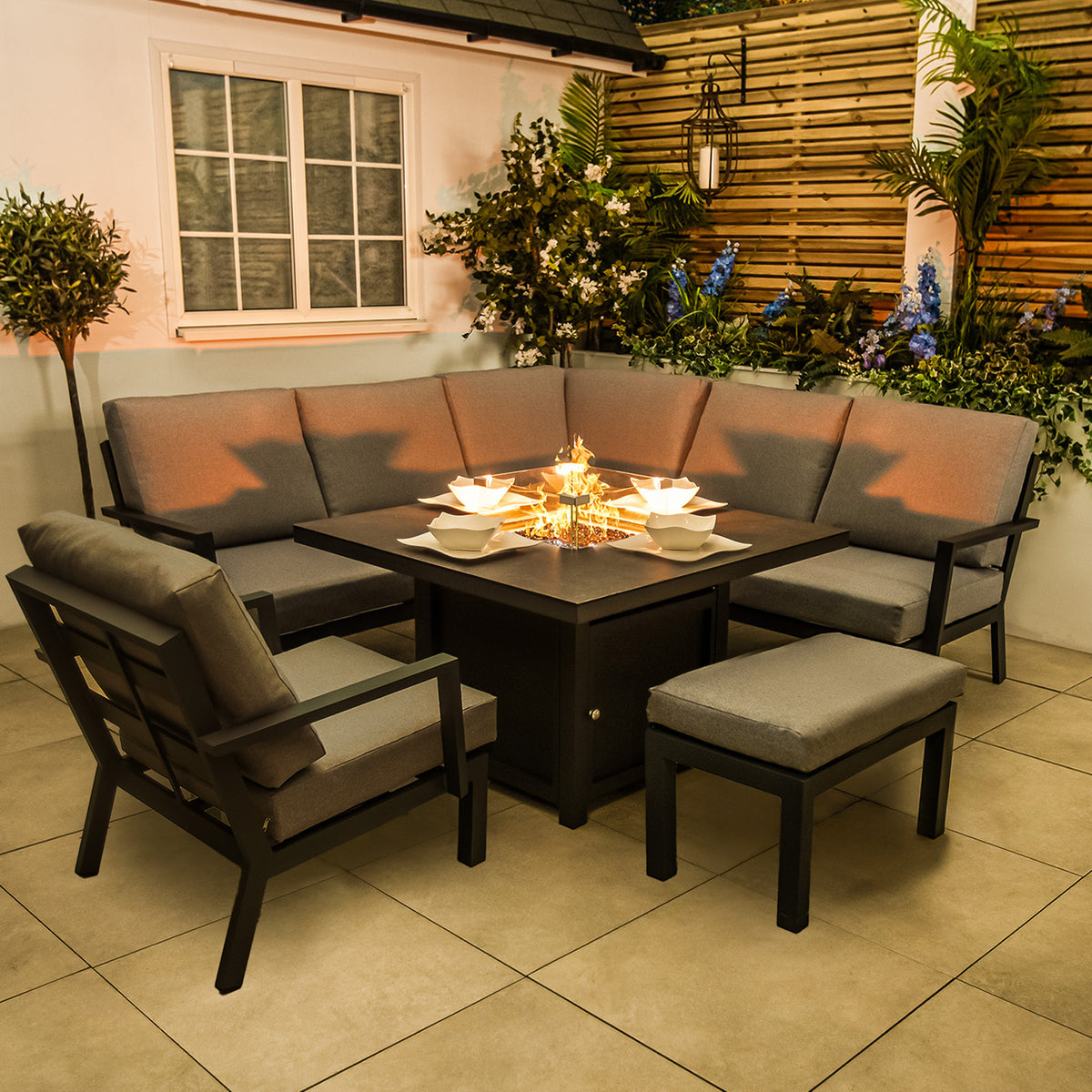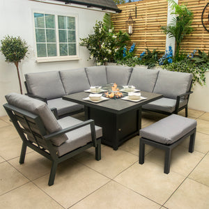 Bracken Outdoors Miami Dark Aluminium Compact Corner Set with Fire Pit Table and Bench and Arm Chair