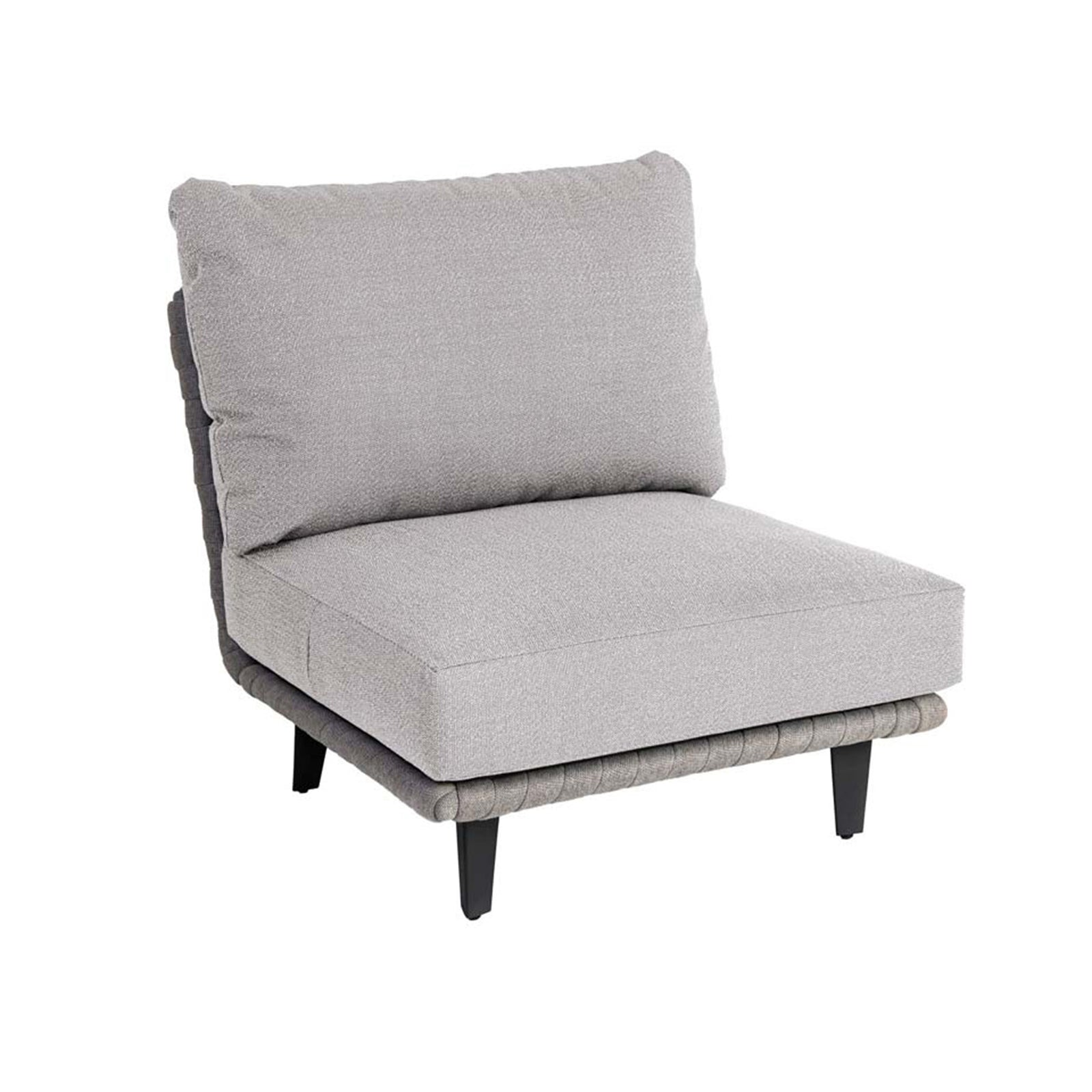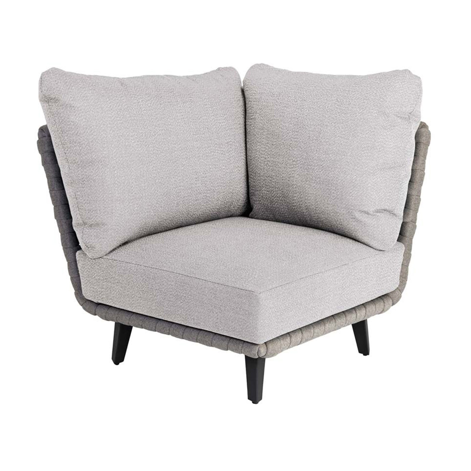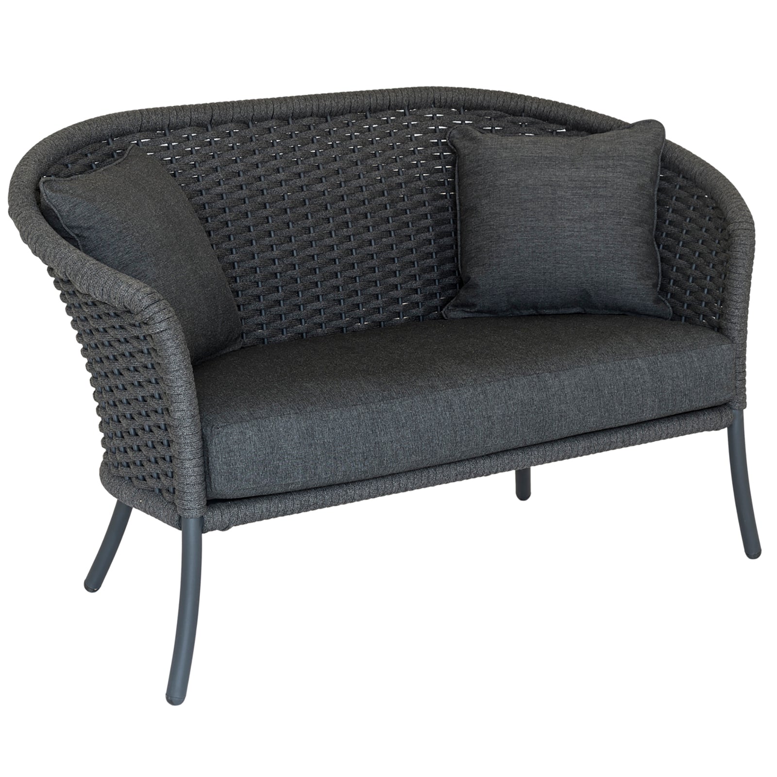 The Aluminium frames are welded by hand and then finished in a fine texture powder coating to protect against corrosion. The frames come in a choice of two colours; grey or beige. The chairs and sofa being hand woven with a marine grade 100% olefin braided rope, also in grey or beige. The 15mm wide rope has a solid rubber core to give a more substantial and tactile quality product – specially selected by Alexander Rose to ensure that the rope does not become saturated and will dry more quickly than unfilled rope material, even after heavy downpours of rain.
