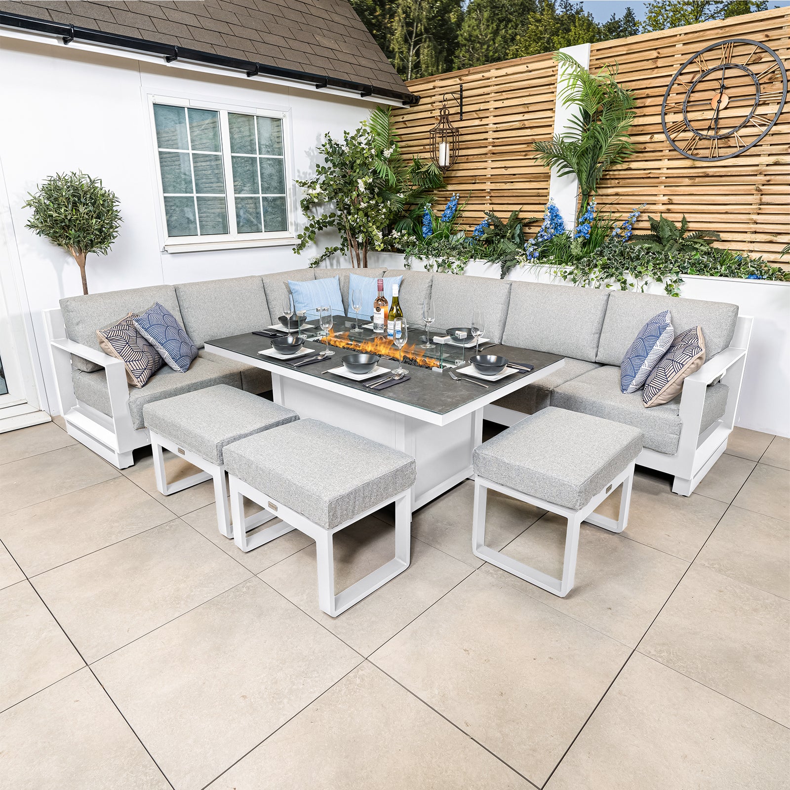 Bracken Outdoors Portland Aluminium Corner Garden Furniture Set with Fire Pit Table