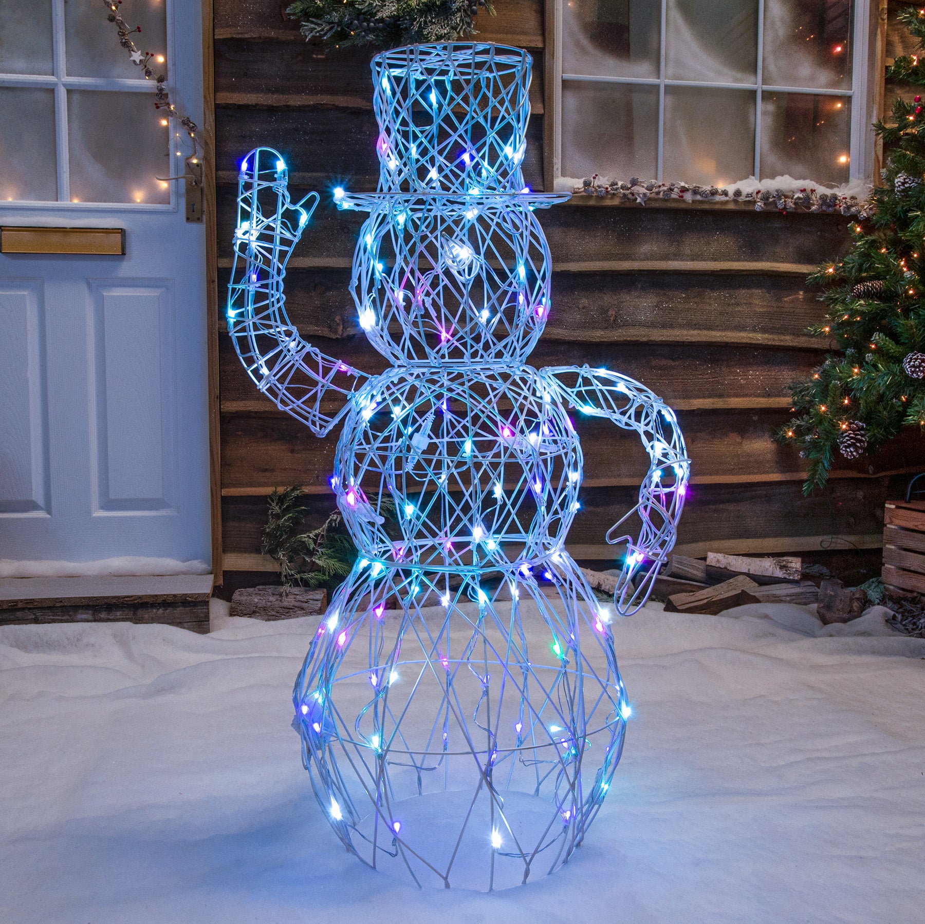 Christmas Snowman Lights - 1M Colour Changing White Wicker Snowmen with 120 LEDS