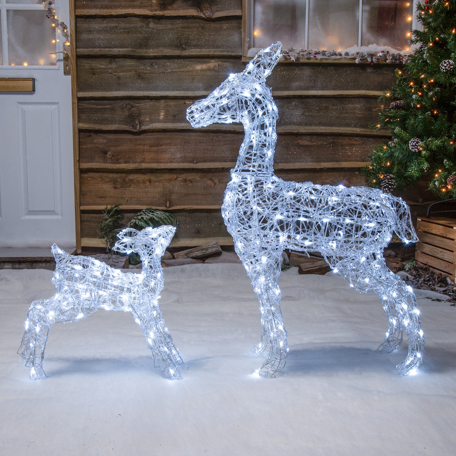 Christmas Reindeer Lights - 90cm Acrylic Outdoor Light Up Deer and Fawn with 230 LEDS