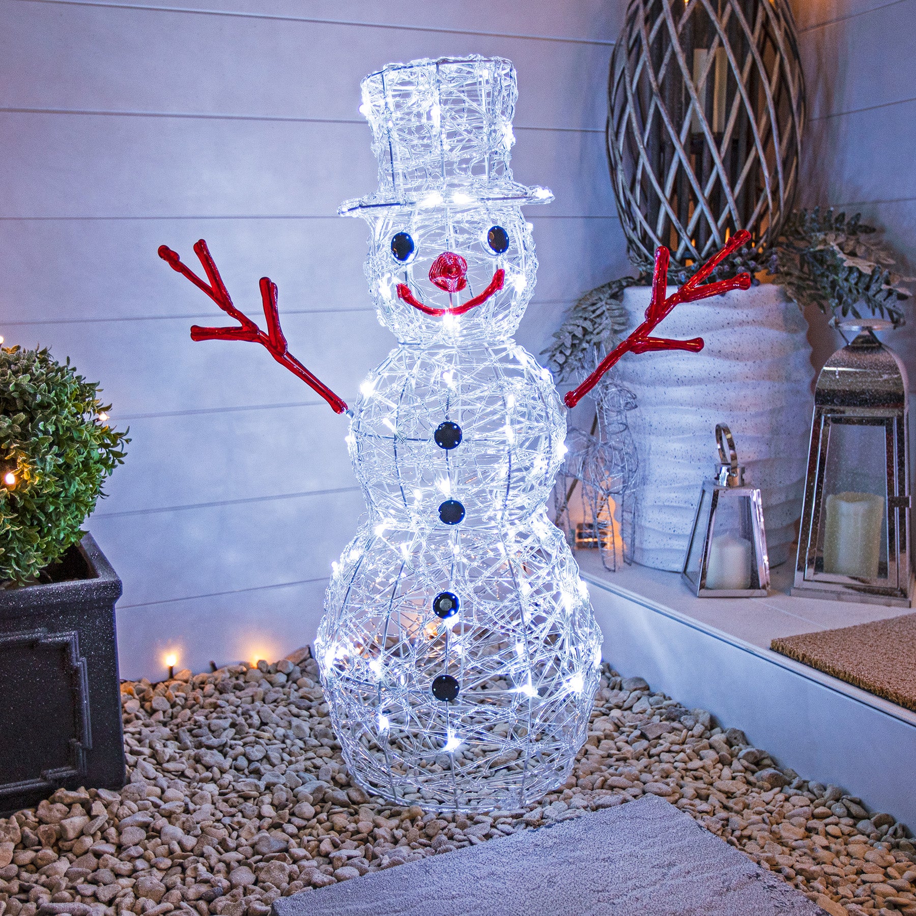 Christmas Snowman Lights - 80cm Acrylic Light Up Snowmen with 100 Cool White Twinkling LEDs