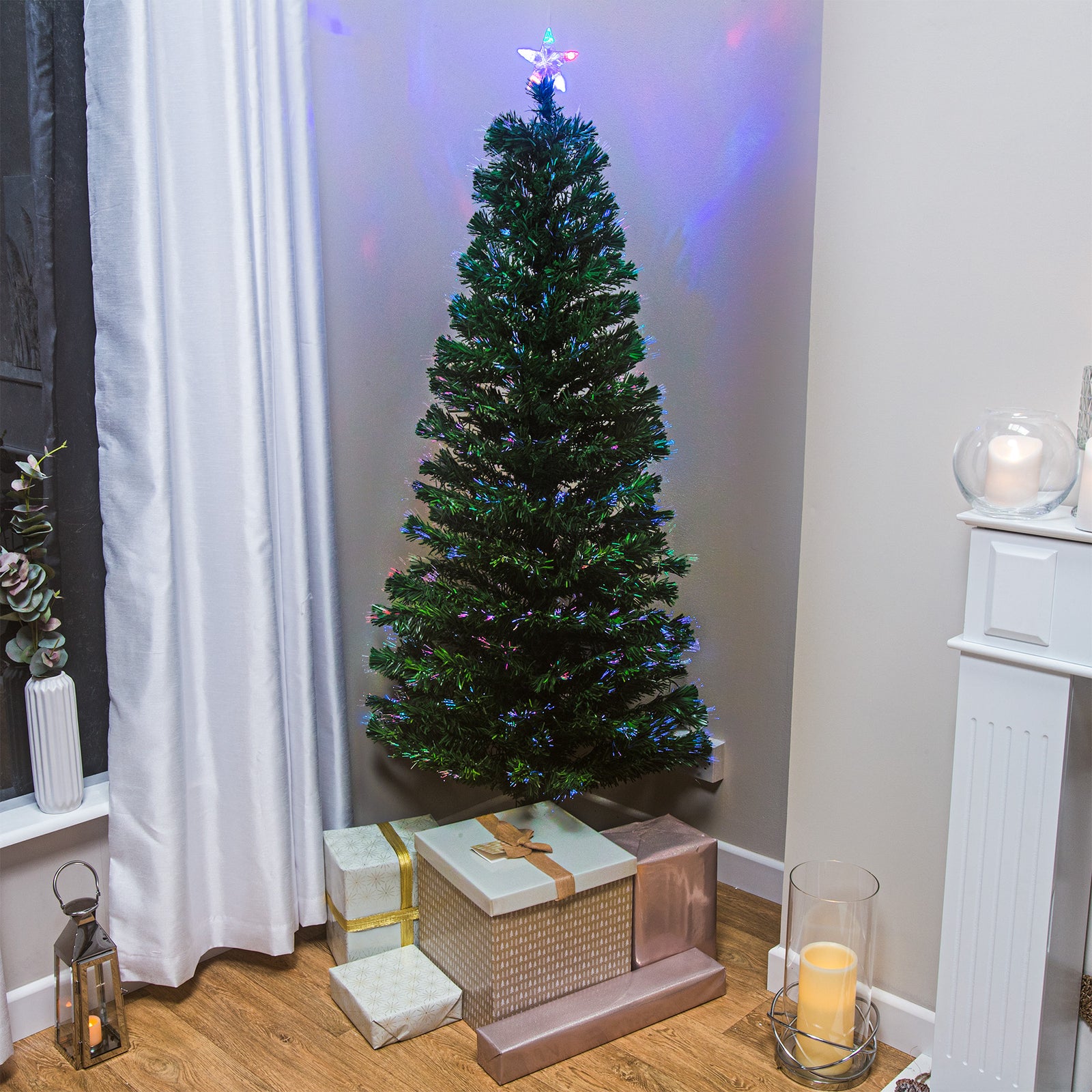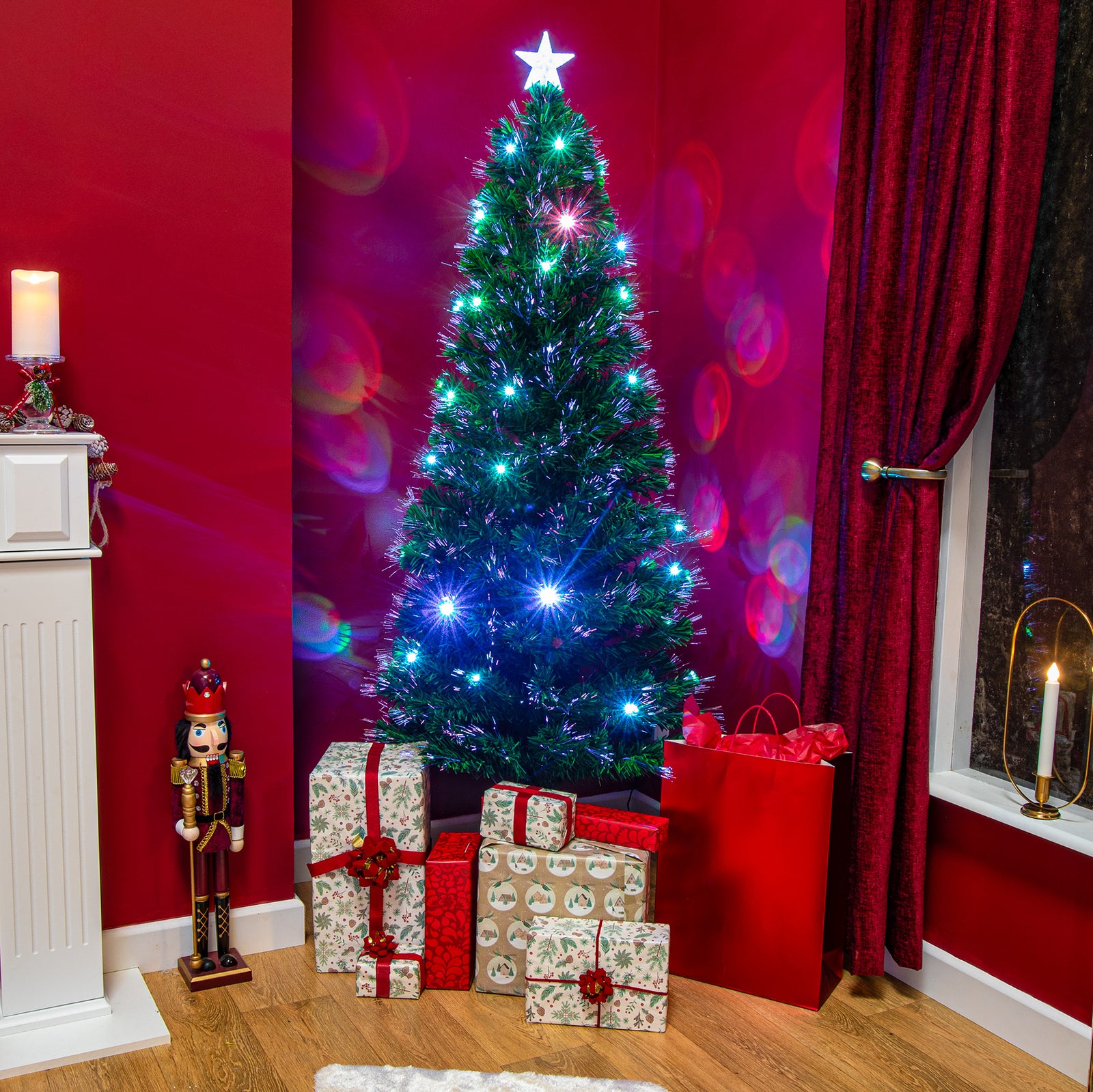 Fibre Optic Green Christmas Tree 2ft to 6ft with Multicoloured Fibre Optic Lights