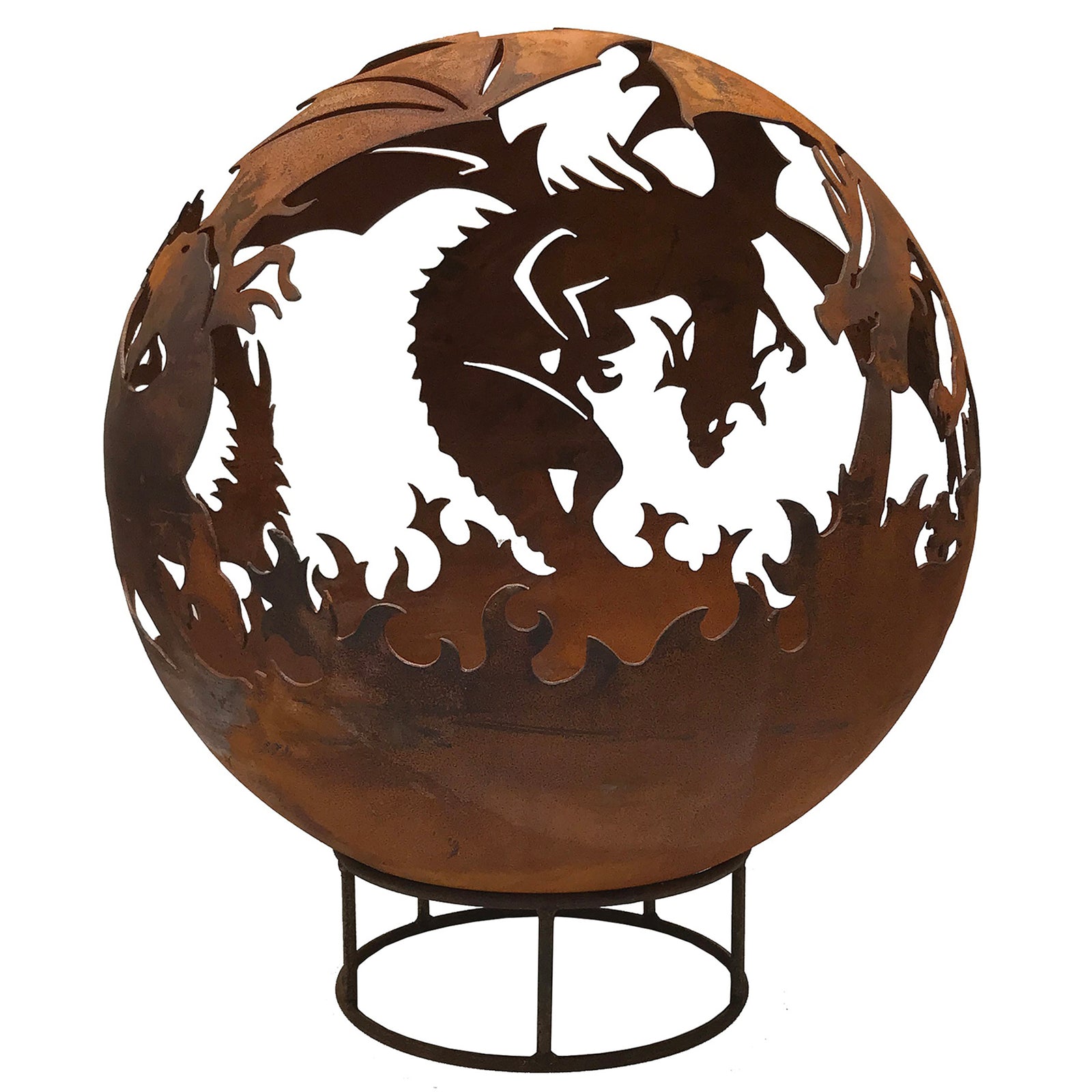 Garden Fire Ball 70cm Dragon Design with Rust Finish