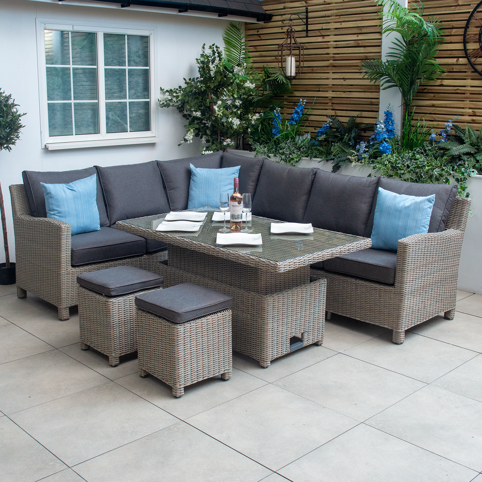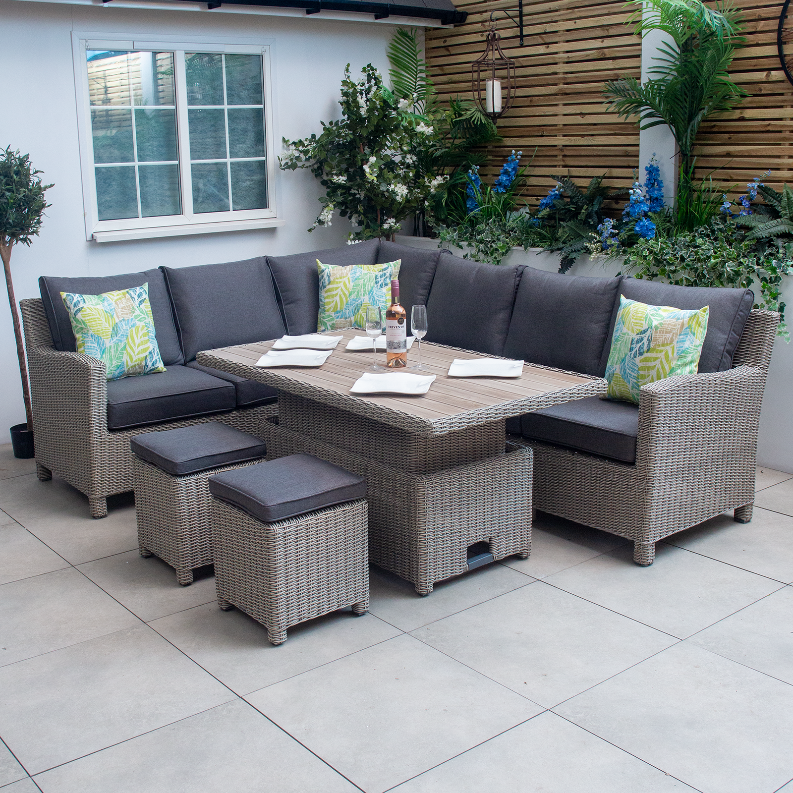 Kettler Palma Signature Grande Oyster Corner Sofa Set with High Low Slat Top Table