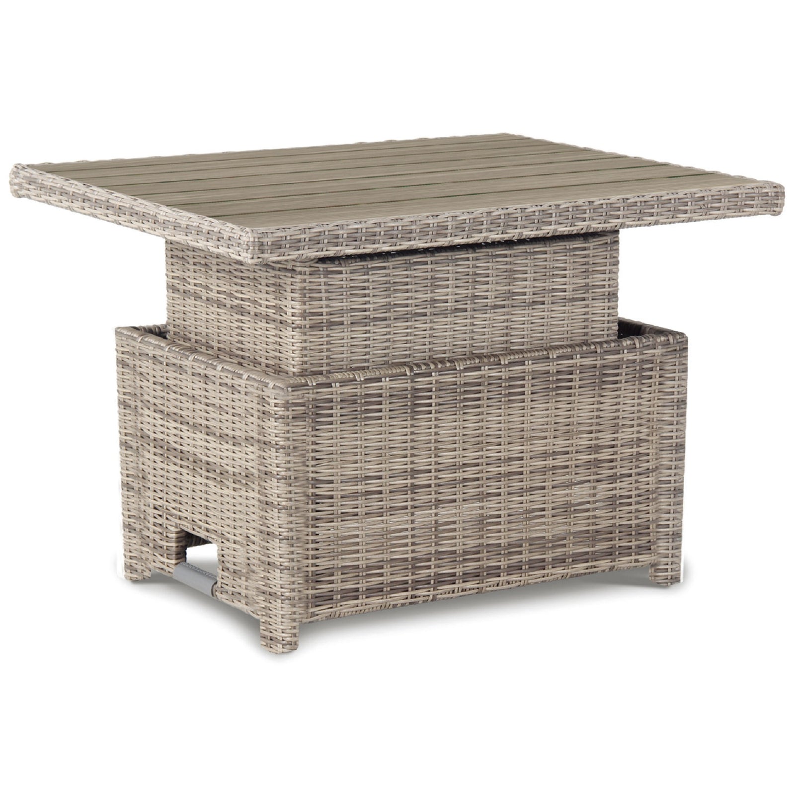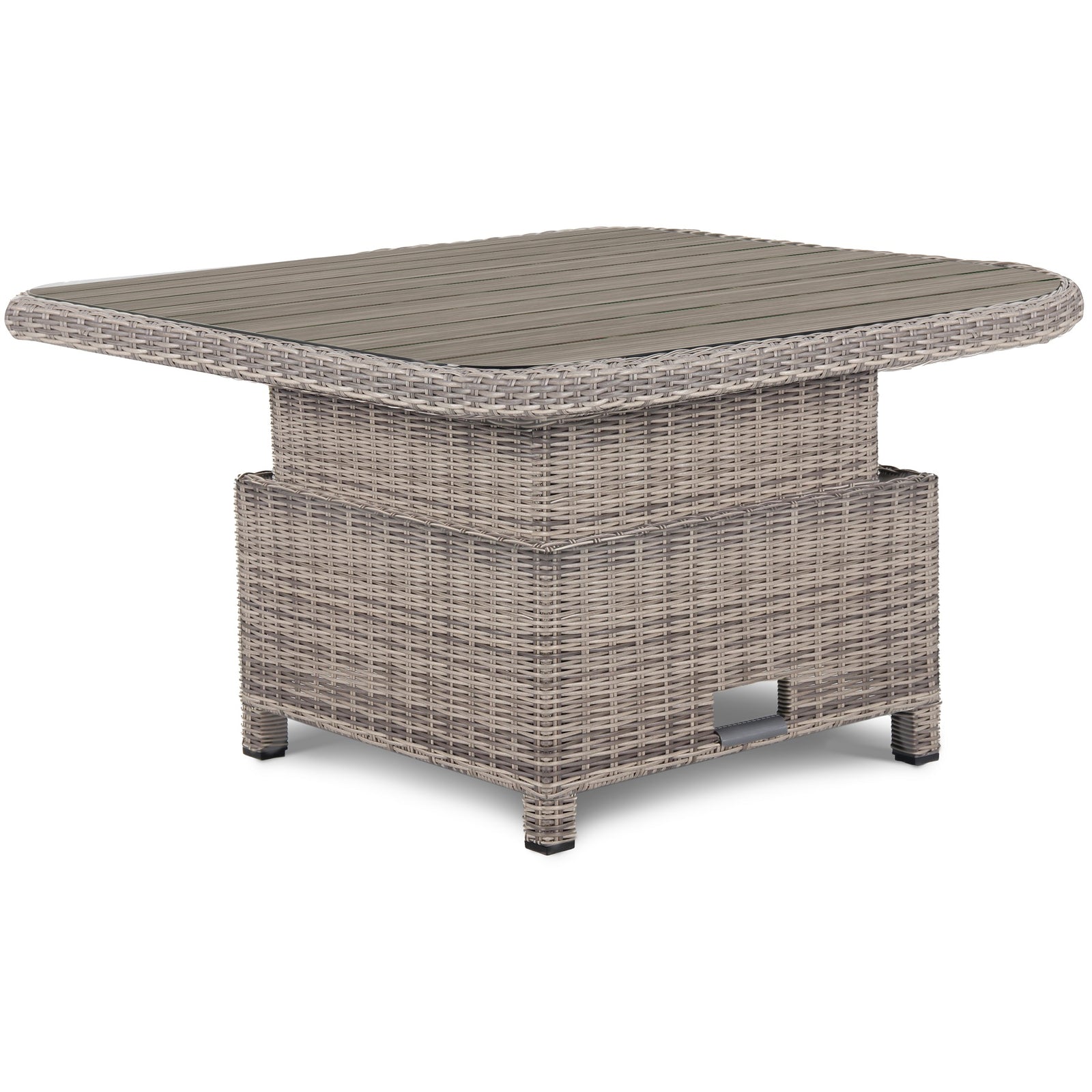 Kettler Palma Signature Mini Oyster Wicker High Low Adjustable Aluminium Wood-Effect Slat Top Table