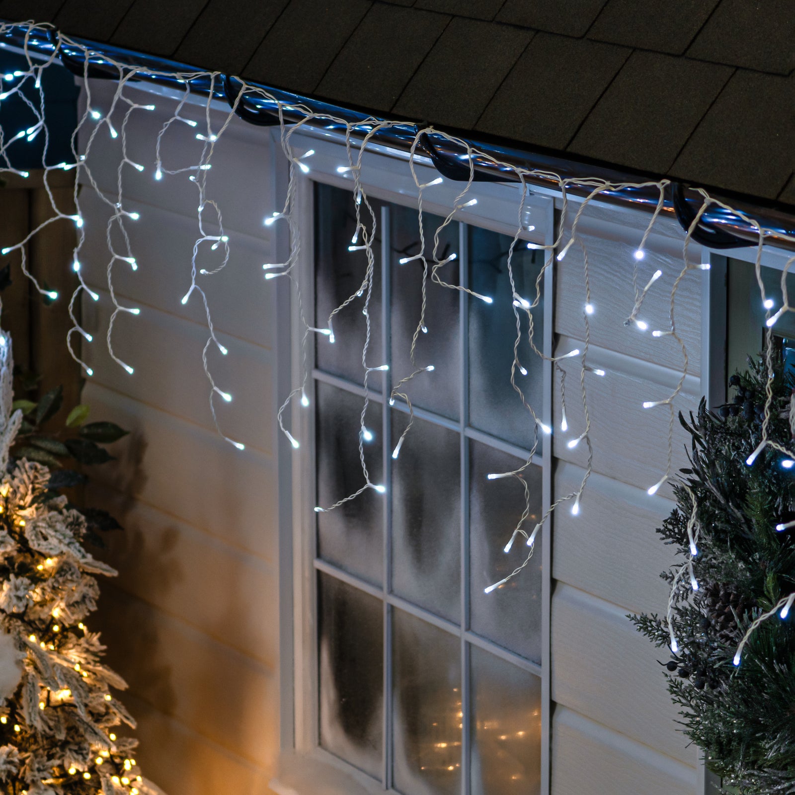 White/Warm White Twinkling Christmas Icicle Lights with White Cable 126,210,420,700,924 LEDs