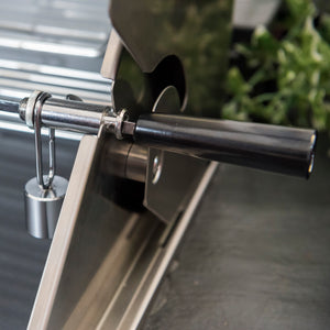 A high quality mains powered rotisserie kit with two adjustable prongs, adjustable counter balance, hardware pack and full instructions.