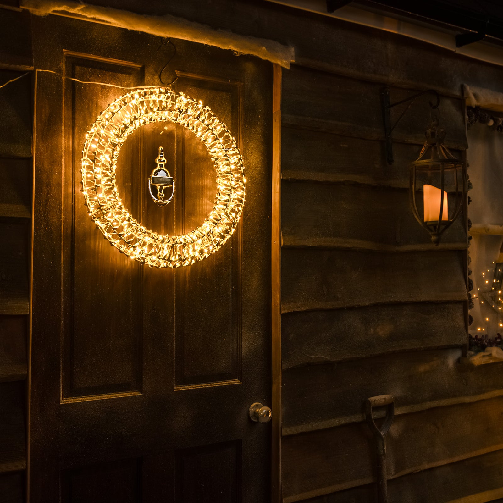 Pre-Lit Christmas Gold Laser Light-Up Wreath 50cm with 300 Warm White LEDs