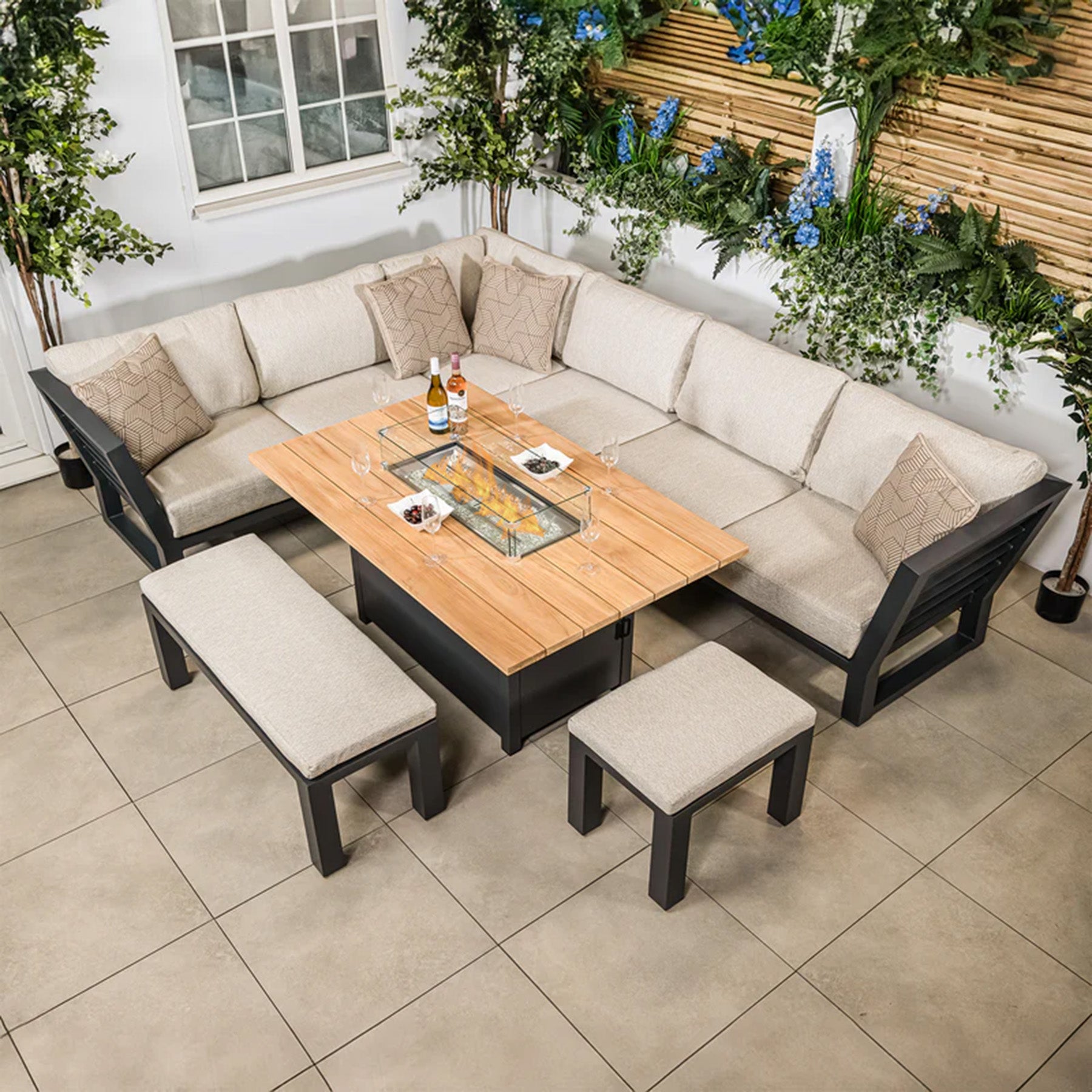 Bracken Outdoors Seattle Aluminium Lounge Corner Garden Furniture Set with Fire Pit Table