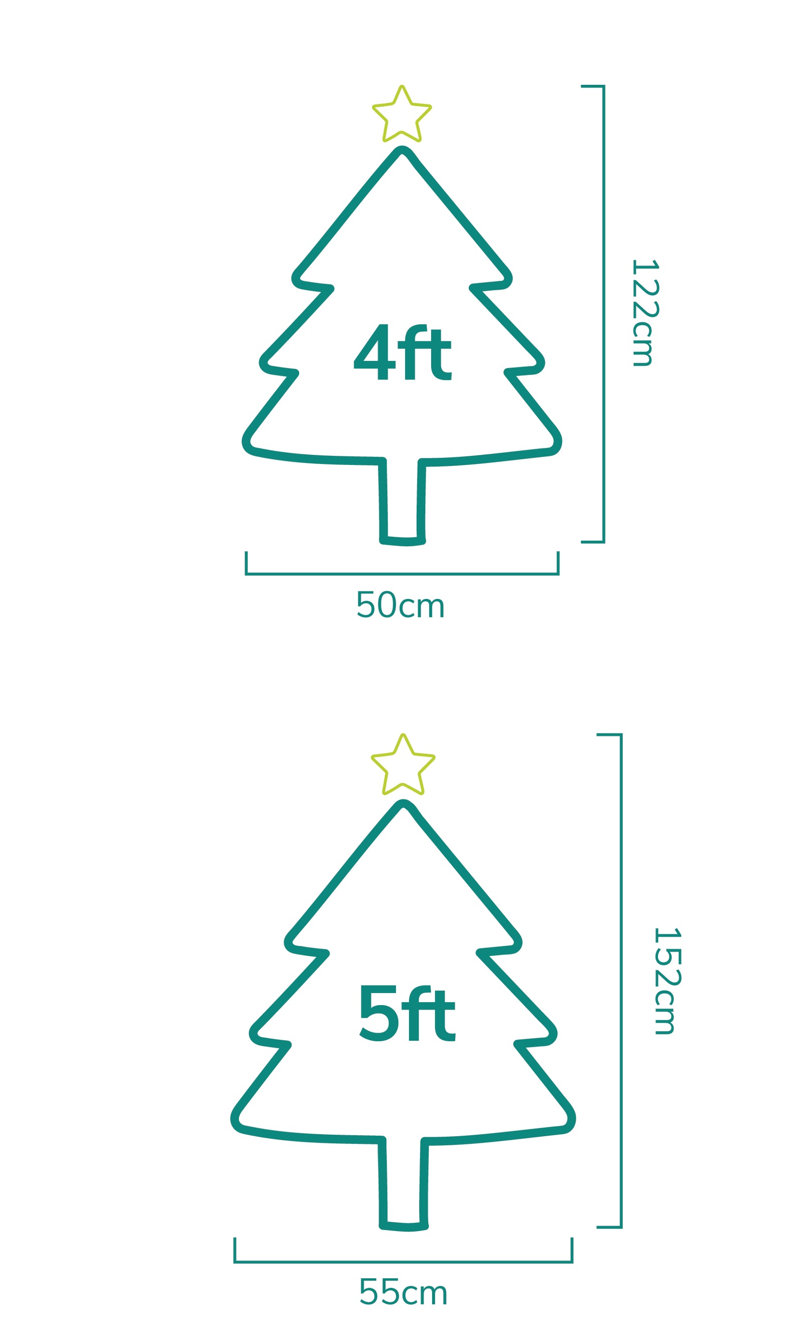 • 5ft's Estimated Width (bottom of the tree): 55cm