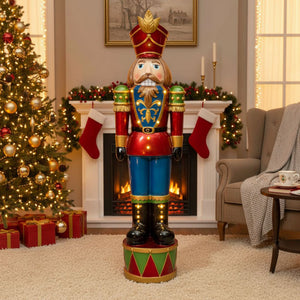 • Constructed from durable polyresin, this Red, Green and Blue Pre-Lit LED Christmas Nutcracker Soldier by The Christmas Centreis based on the traditional German wooden Nutcrackers. They can be used indoors or outdoors. Placed next to your fireplace or as a guard at your front door, it will look amazing.