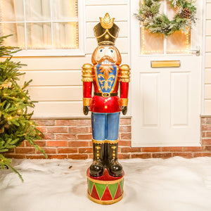 4.5ft Large Traditional Christmas Nutcracker Soldier - Red and Blue with LED Lights