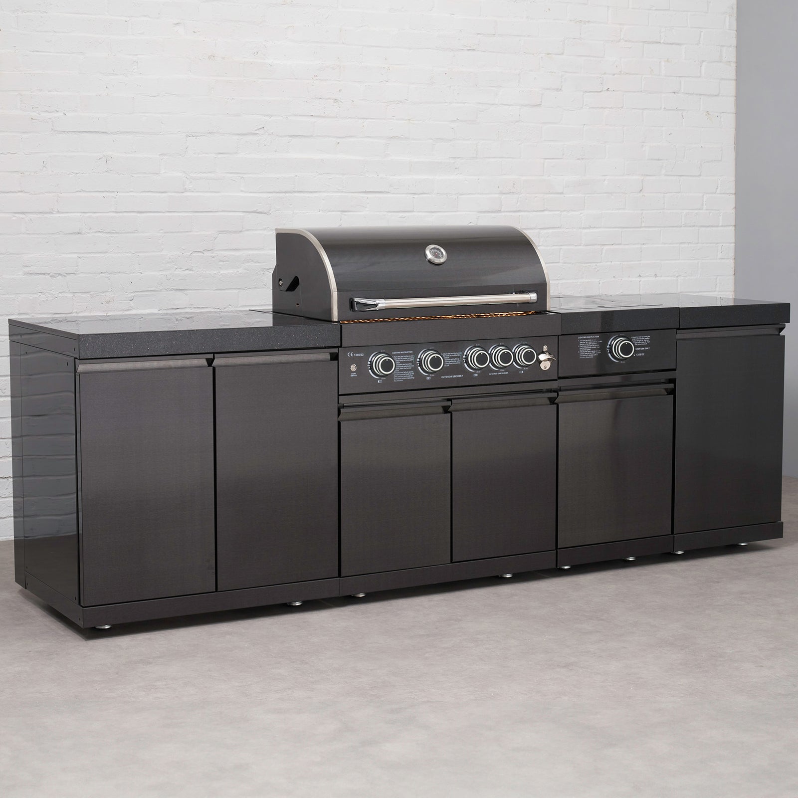 The Nero range offers Black 304 grade Stainless steel throughout with premium granite and combined, they give a modern and durable surface for your design ensuring the kitchen is suitable for use outdoors and adds an attractive feature to your garden or patio.