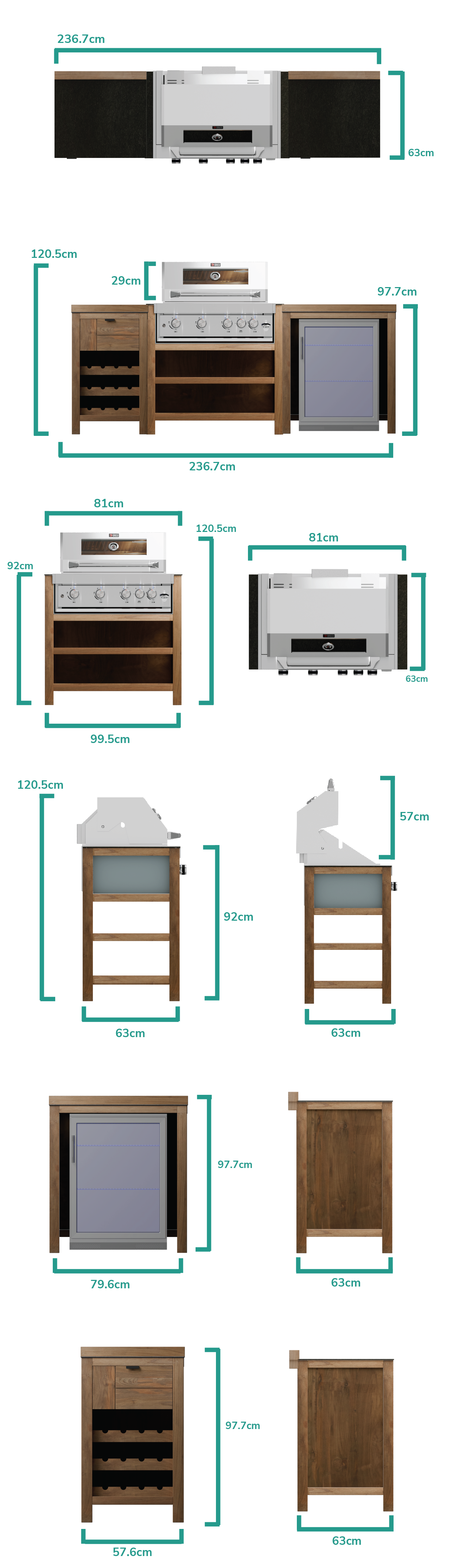 • This Draco Grills Teak 4 Burner Outdoor Kitchen is great for people who frequently entertain outside or have parties on occasion. It features a 4 burner gas BBQ, wine rack, and single fridge. This outdoor cooking area will look wonderful in your garden because of the rustic combination of reclaimed Teak and ceramic counters. It also covers the fundamentals of cooking and entertaining for small to medium social gatherings.