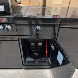 This Nero Outdoor Kitchen contains a Nero 6 burner BBQ, a Nero Sear Station, Nero Double Cupboard and a Nero Fridge and Cabinet.