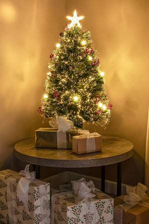 When activated, the built in fibre optic lights will provide a soothing glow at a slow speed around the tree with its festive multi coloured fibre optic lights, creating a cosy and classic Christmas atmosphere. At the summit of the tree, there is also a warm white LED star.
