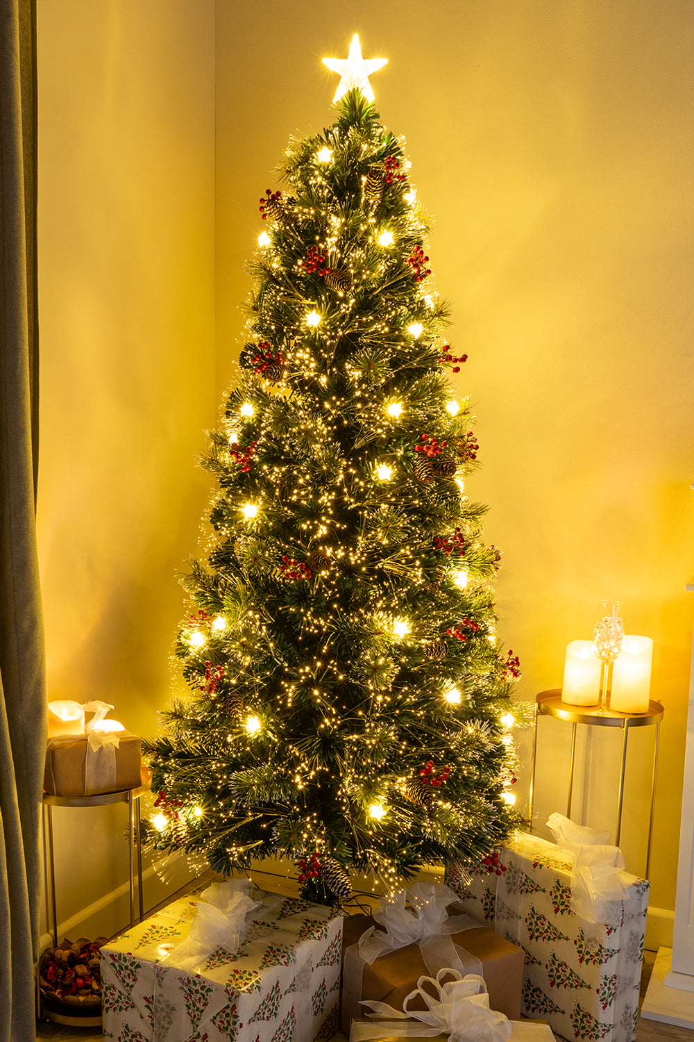 Green Fibre Optic Christmas Tree 3ft - 7ft with Berries, Cones and Warm White LED Stars