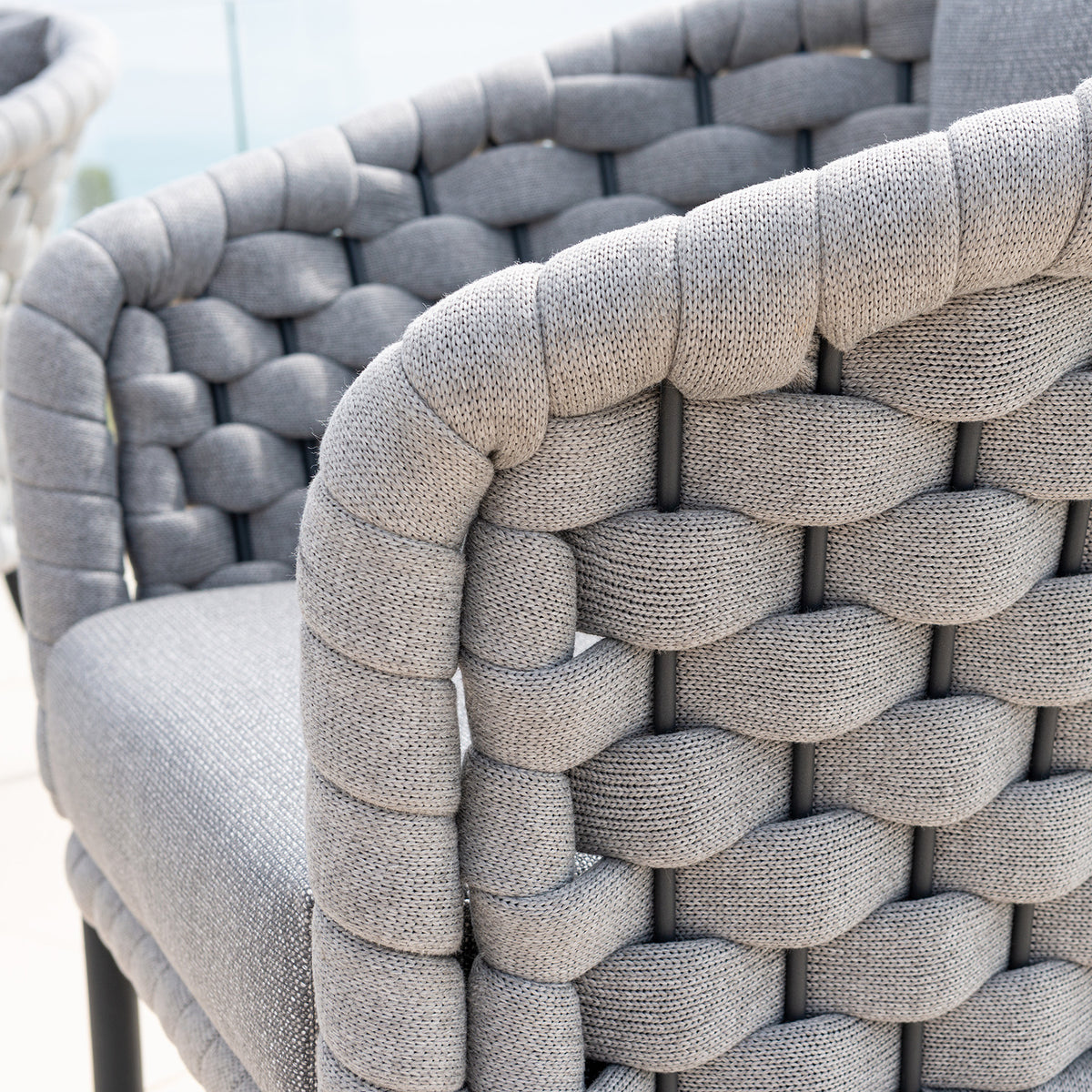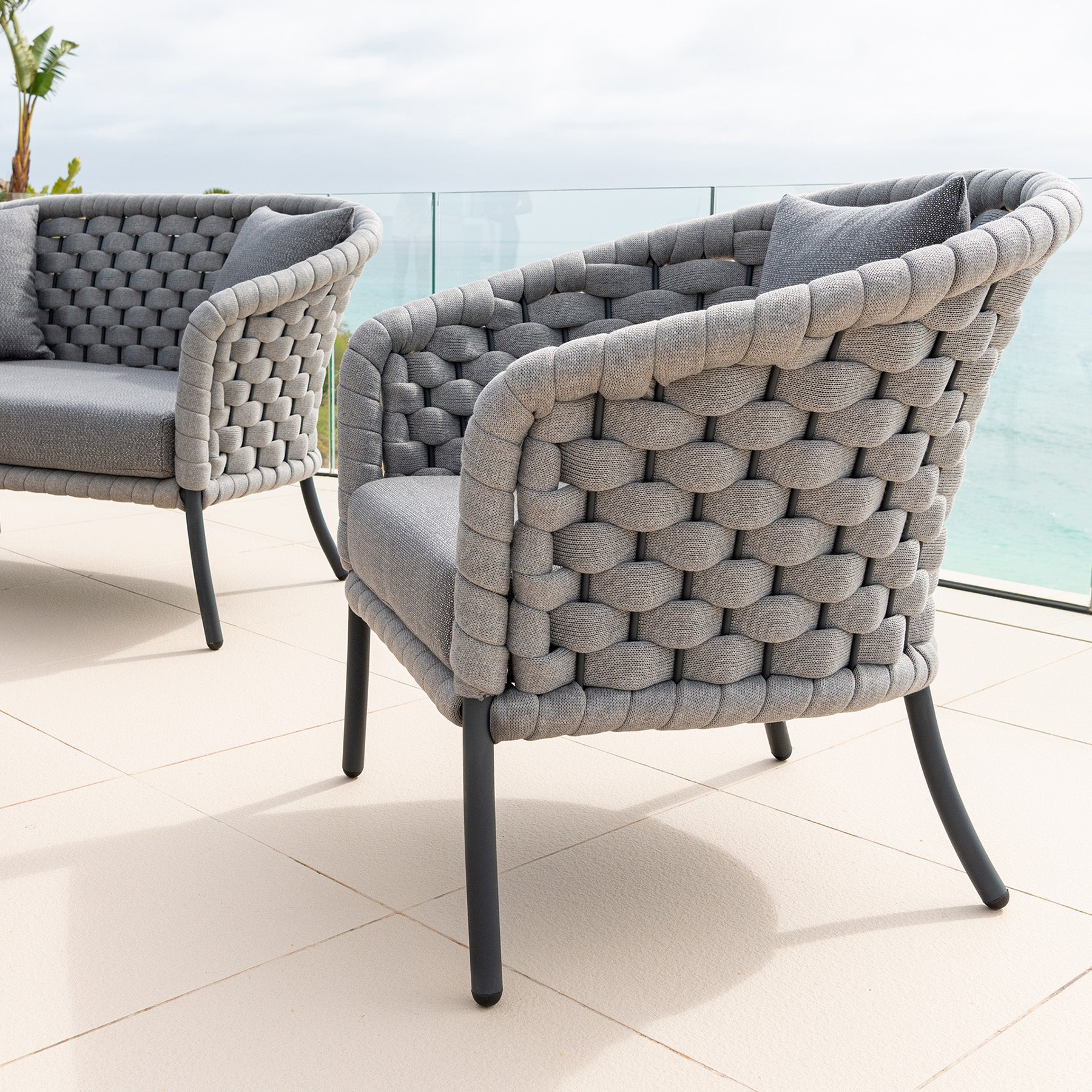 • The Alexander Rose Cordial Wide Rope Curved Top Lounge Chair - Light Grey will add a touch of luxury to your outdoor living space with its combination of basket weave and traditional style. A lounge set will undoubtedly be the gathering place for guests if you combine this garden chair with other items from the Cordial Luxe range.