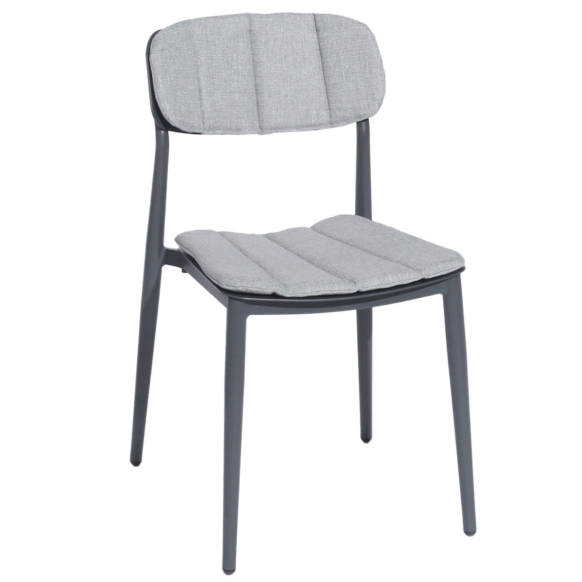 It is finished in a partially textured matte Grey colour that is both chic and modern. The cushions are included and secured to the chair back with toggles.
