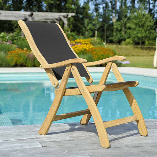 • The Alexander Rose Bengal Roble Charcoal Sling Recliner Chair is the perfect outdoor seating option for relaxing and enjoying your outside space. This stylish and comfortable garden chair will look great on its own or in conjunction with a large round dining table.