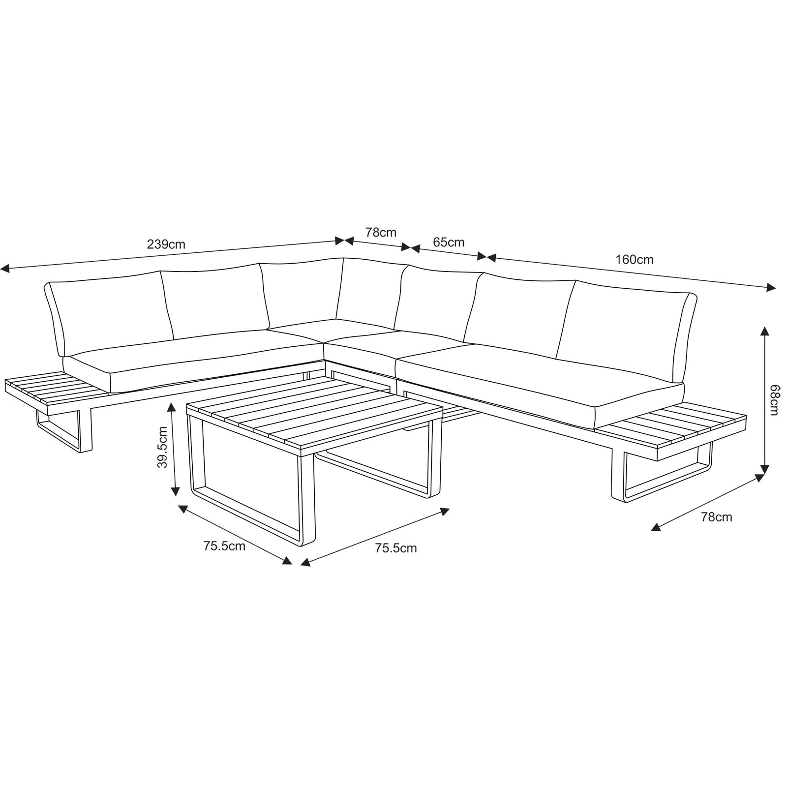 • Left Sofa : 239cm (L) x 78cm (D) x 68cm (H)