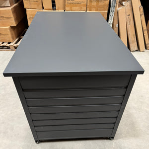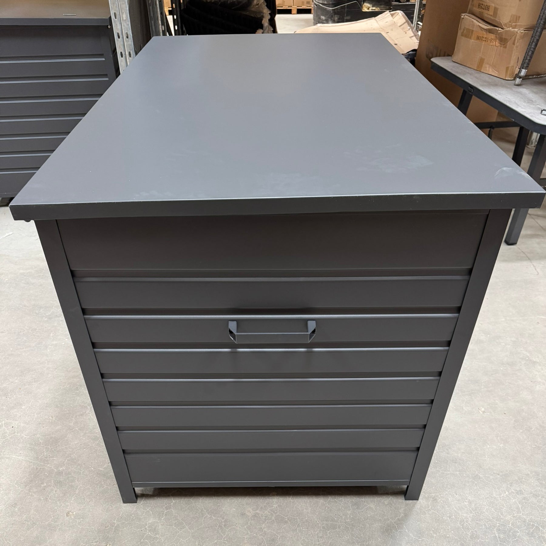 Constructed with a powder-coated aluminium frame and body, this metal box has a handle and wheels on one end, allowing it to be easily moved around the garden and/or patio.