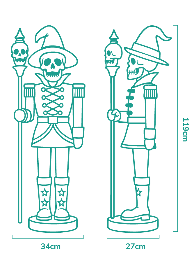 Whether you're decorating for trick-or-treaters or hosting a haunted soirée, this illuminated nutcracker skeleton is sure to steal the show!
