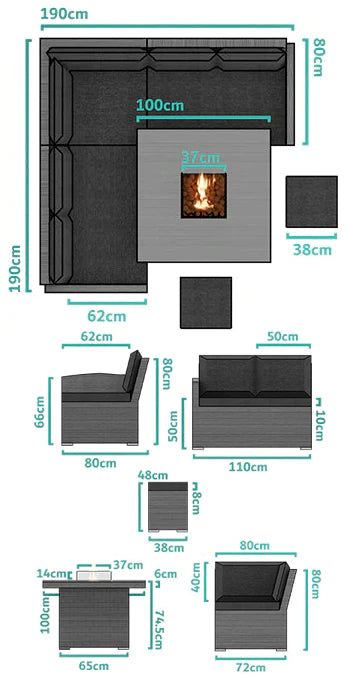 You can use this corner sofa rattan garden furniture set with fire pit table in the garden, on the patio, on the decking and if you're lucky enough to have a large balcony or veranda...then, it can even work there too.