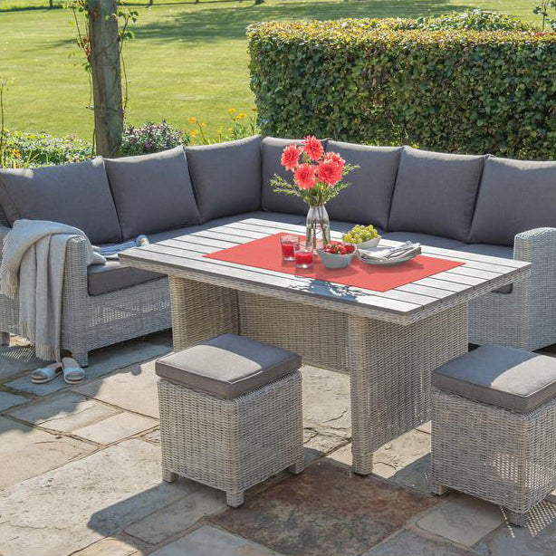 Kettler Palma Corner Right Hand White Wash Wicker Outdoor Sofa Set with Slat Top Table