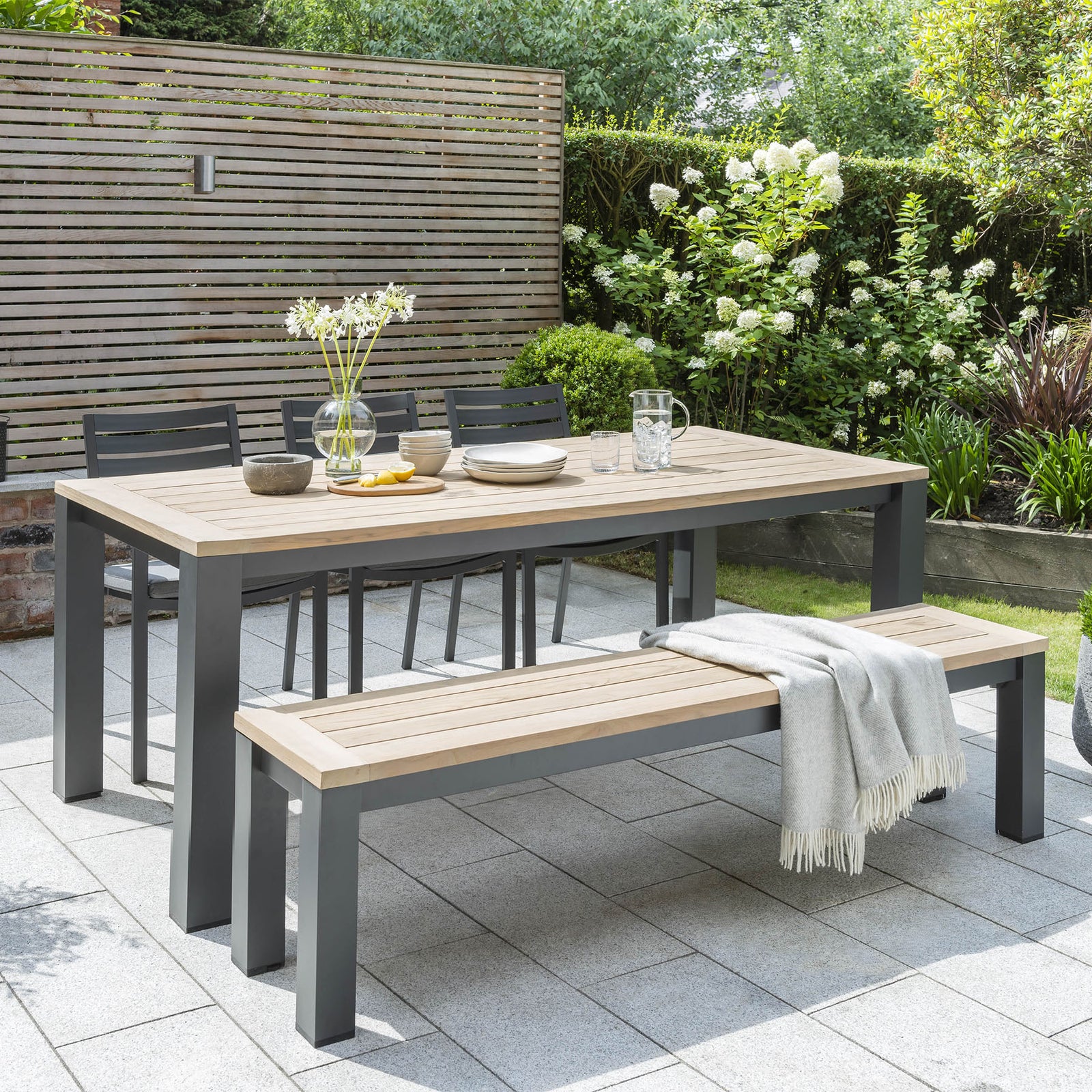 Kettler Elba Signature Teak and Aluminium 8 Seat Rectangular Chair and Bench Garden Furniture Set