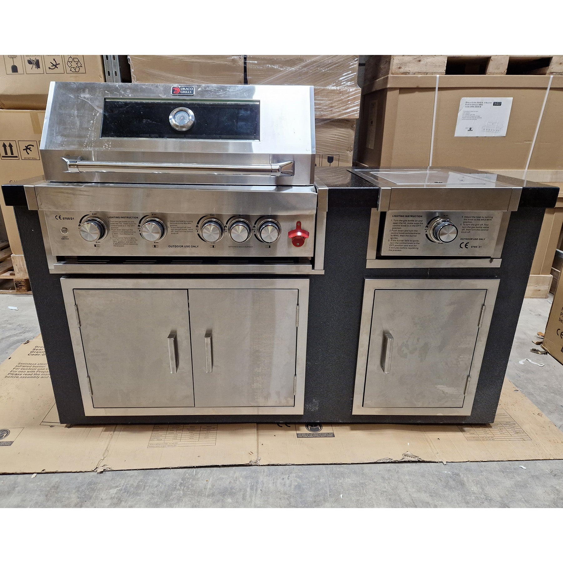Ex Display Draco Grills Avalon Stainless Steel Outdoor Kitchen with 4 Burner Barbecue and Side Burner
