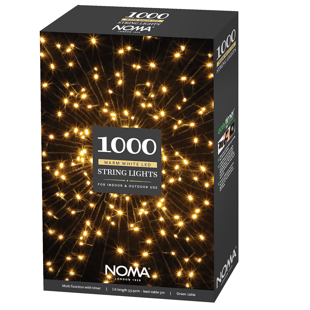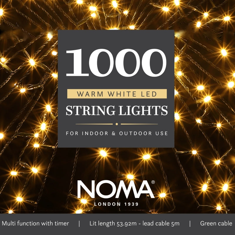 Noma Christmas 120, 240, 360, 480, 720, 1000 Multifunction String Lights with Green Cable - Warm White
