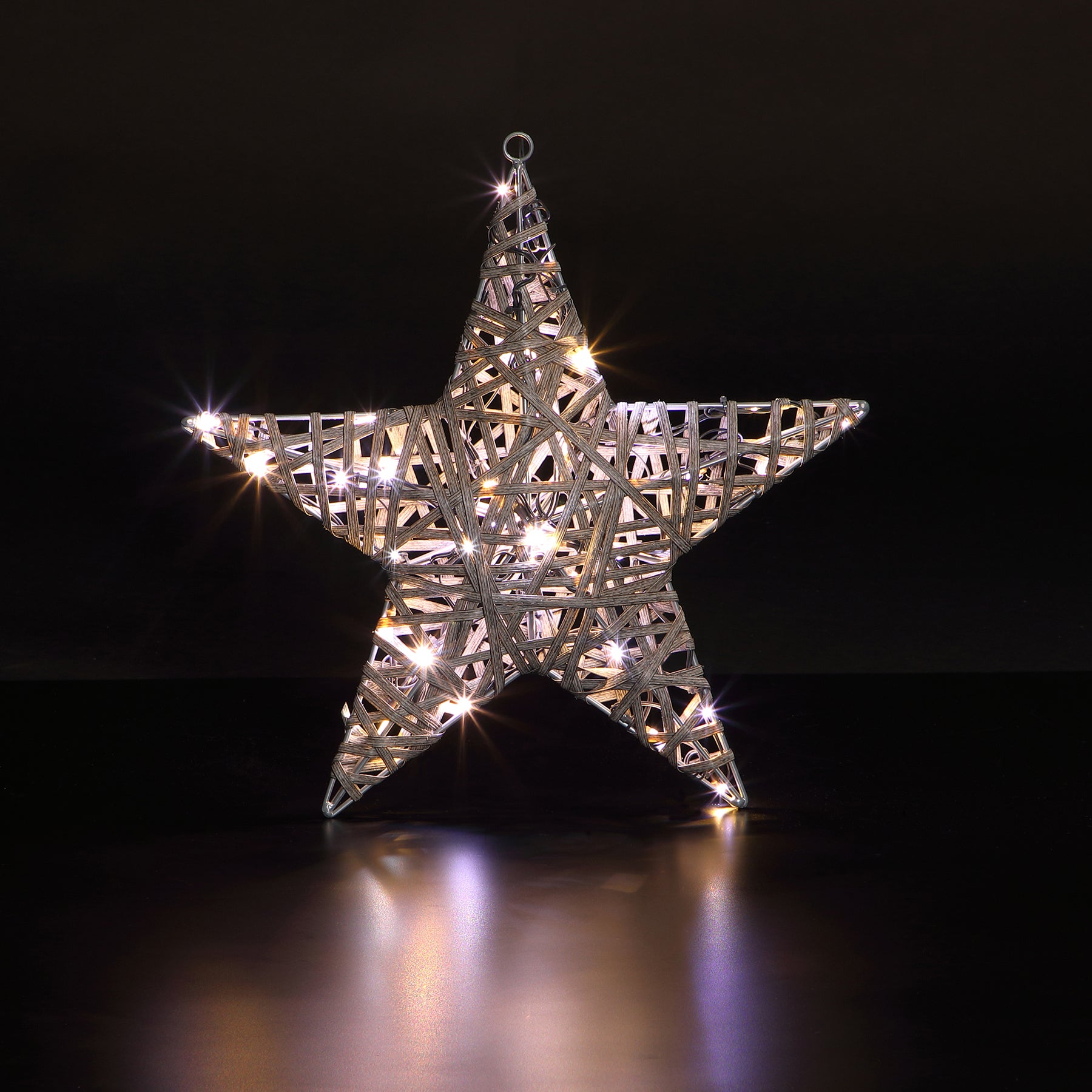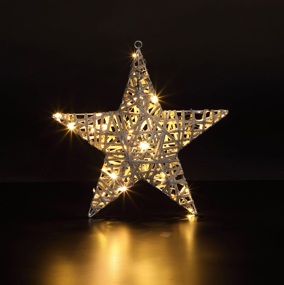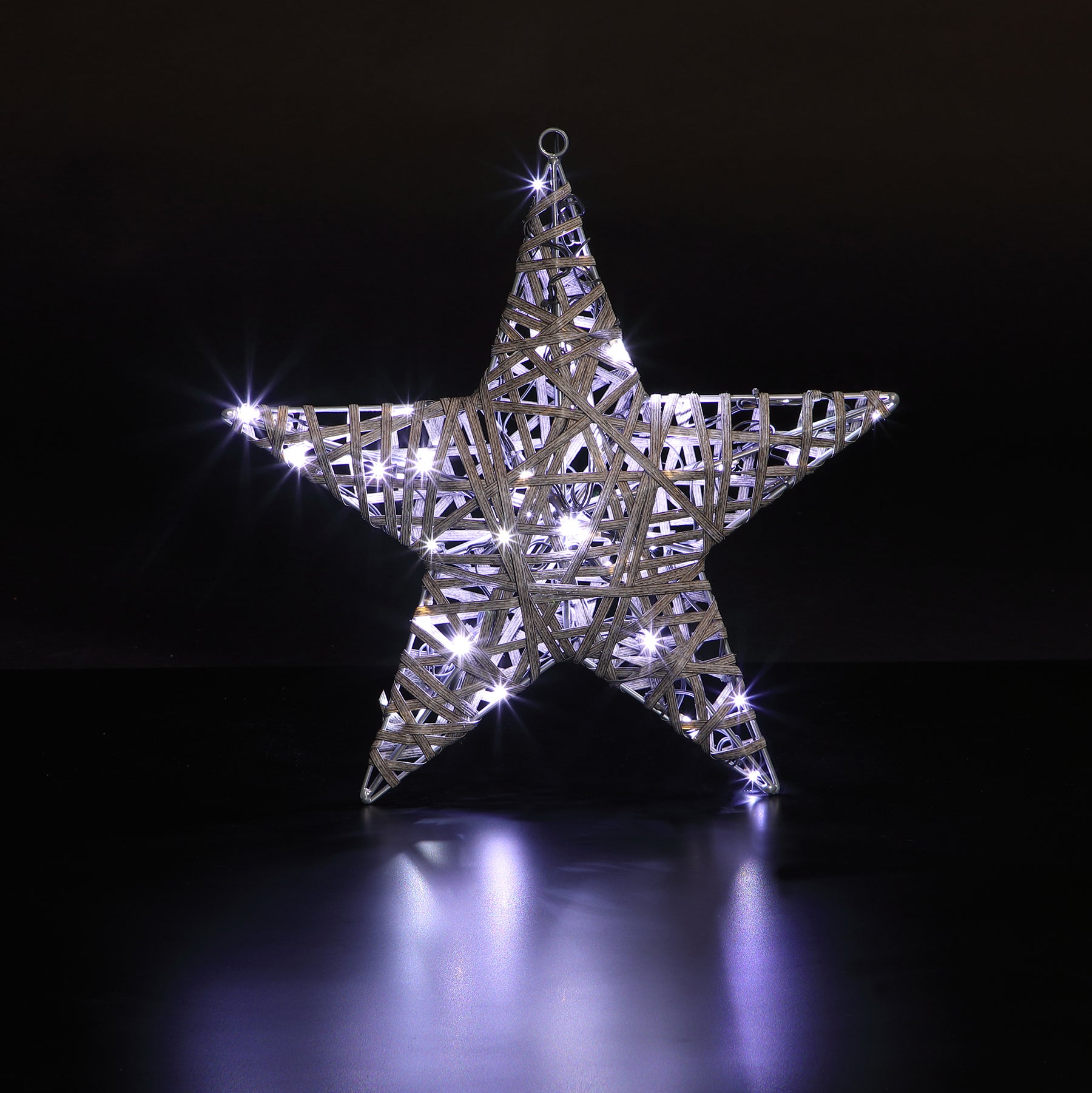 Noma Christmas 40CM Star Grey Wicker With 40 White LEDS and Timer