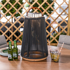 The Bracken Outdoors Solar Powered Rope Garden Lantern is made from durable stainless steel with a modern textaline rope finish in charcoal - perfect for brightening up your evenings outside.