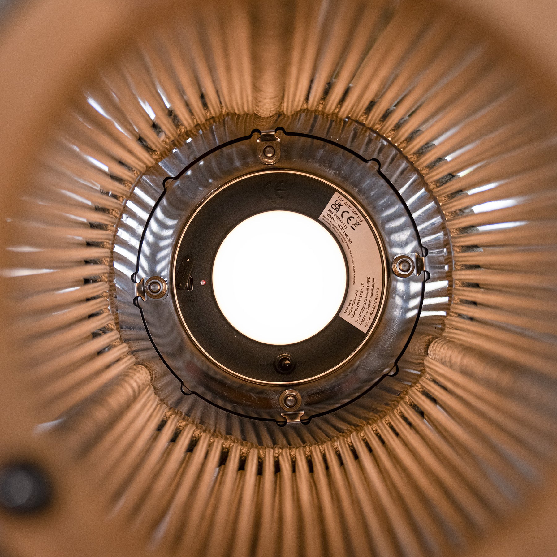 The solar panel on this outdoor lantern takes charge during the day or it is easy to charge using the supplied USB cable.