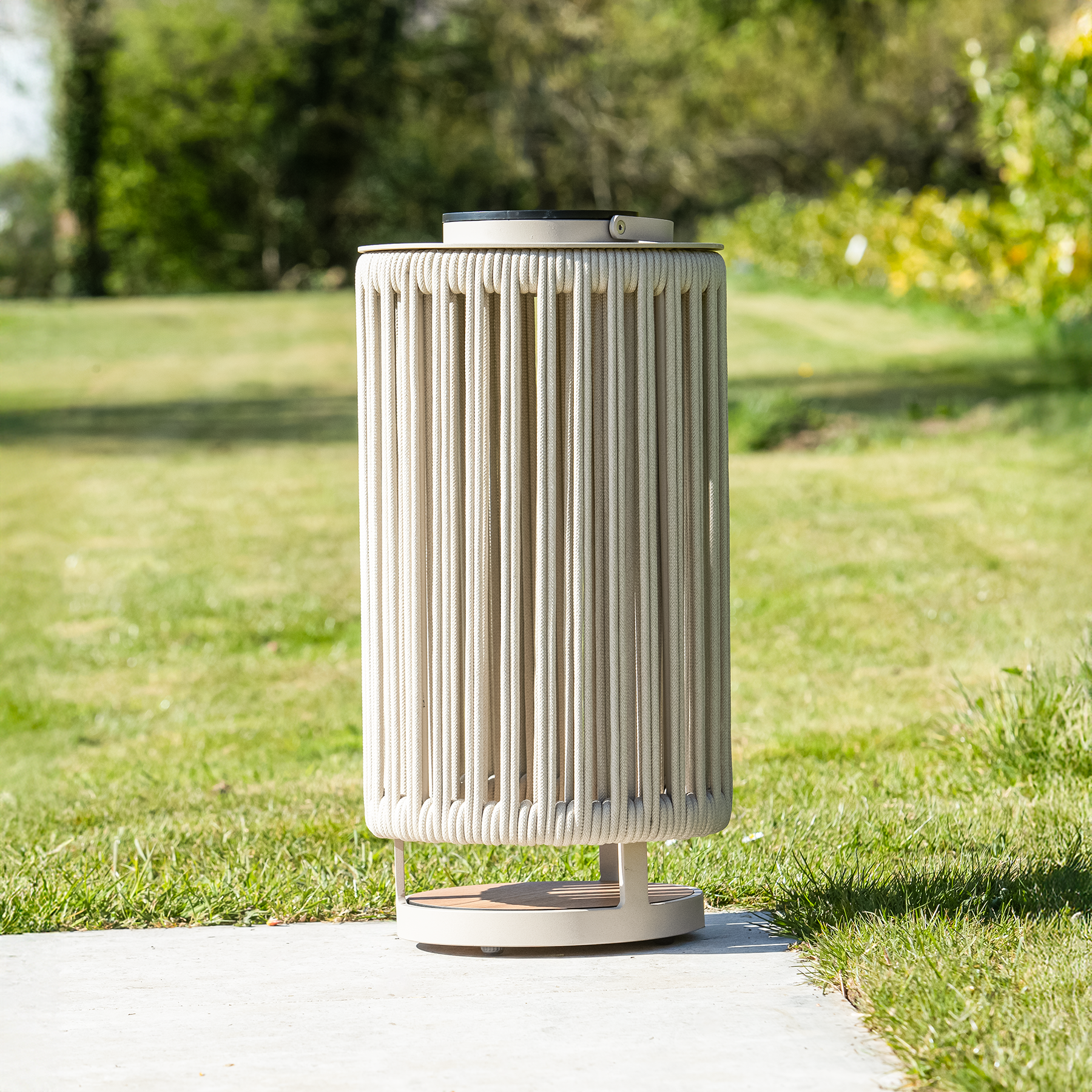 The Bracken Outdoors Solar Powered Helios Garden Lantern is made from durable stainless steel with a modern textaline rope finish in champagne - perfect for brightening up your evenings outside.