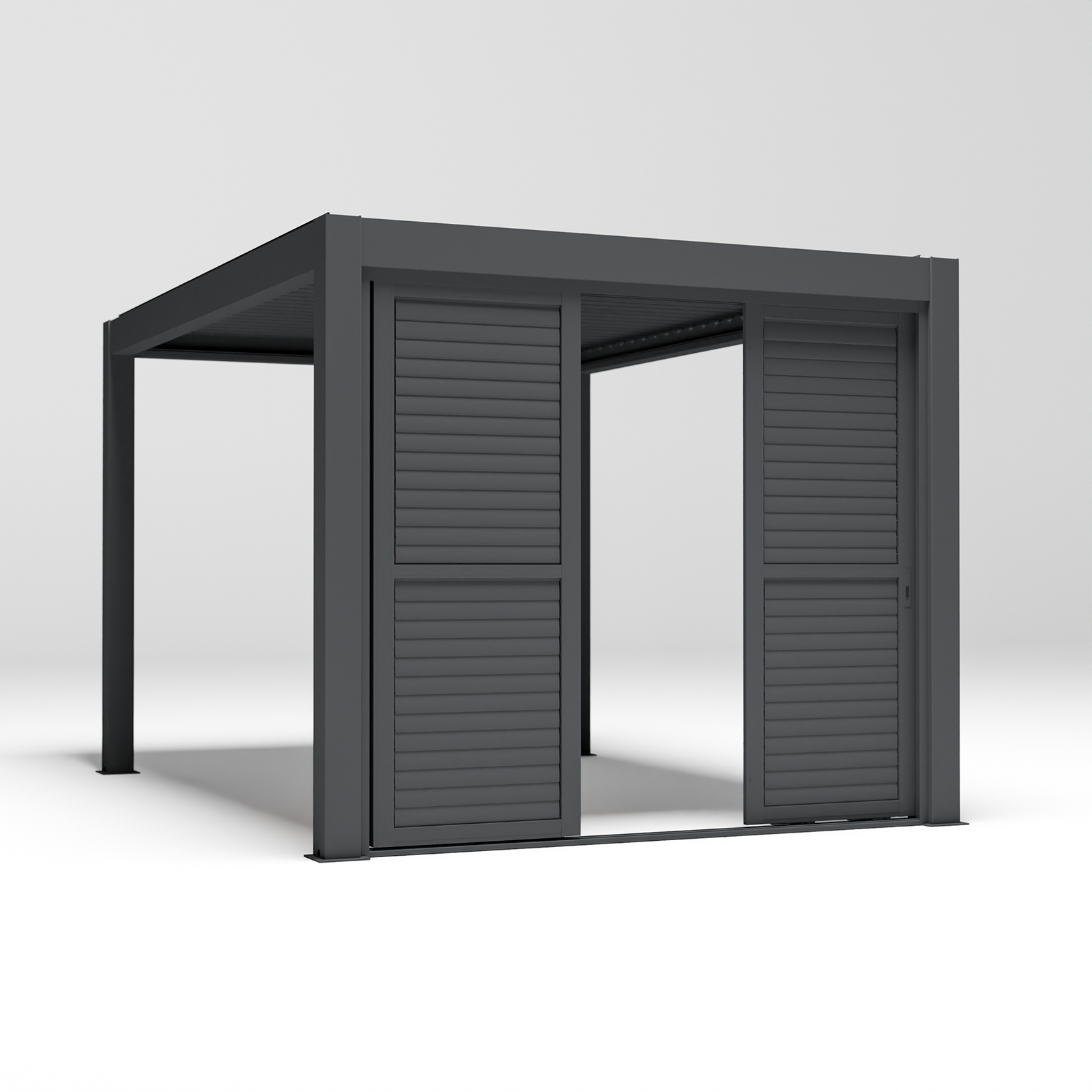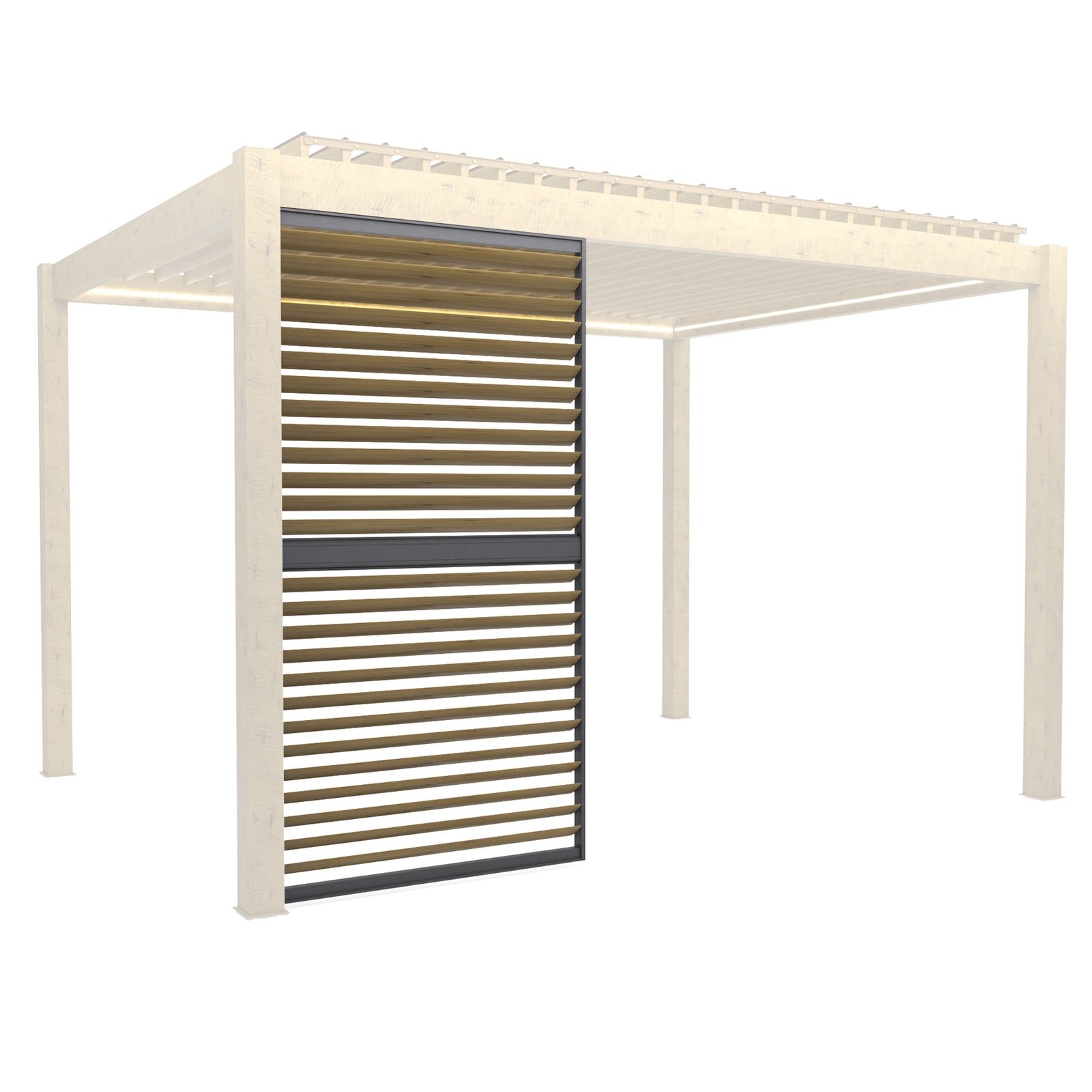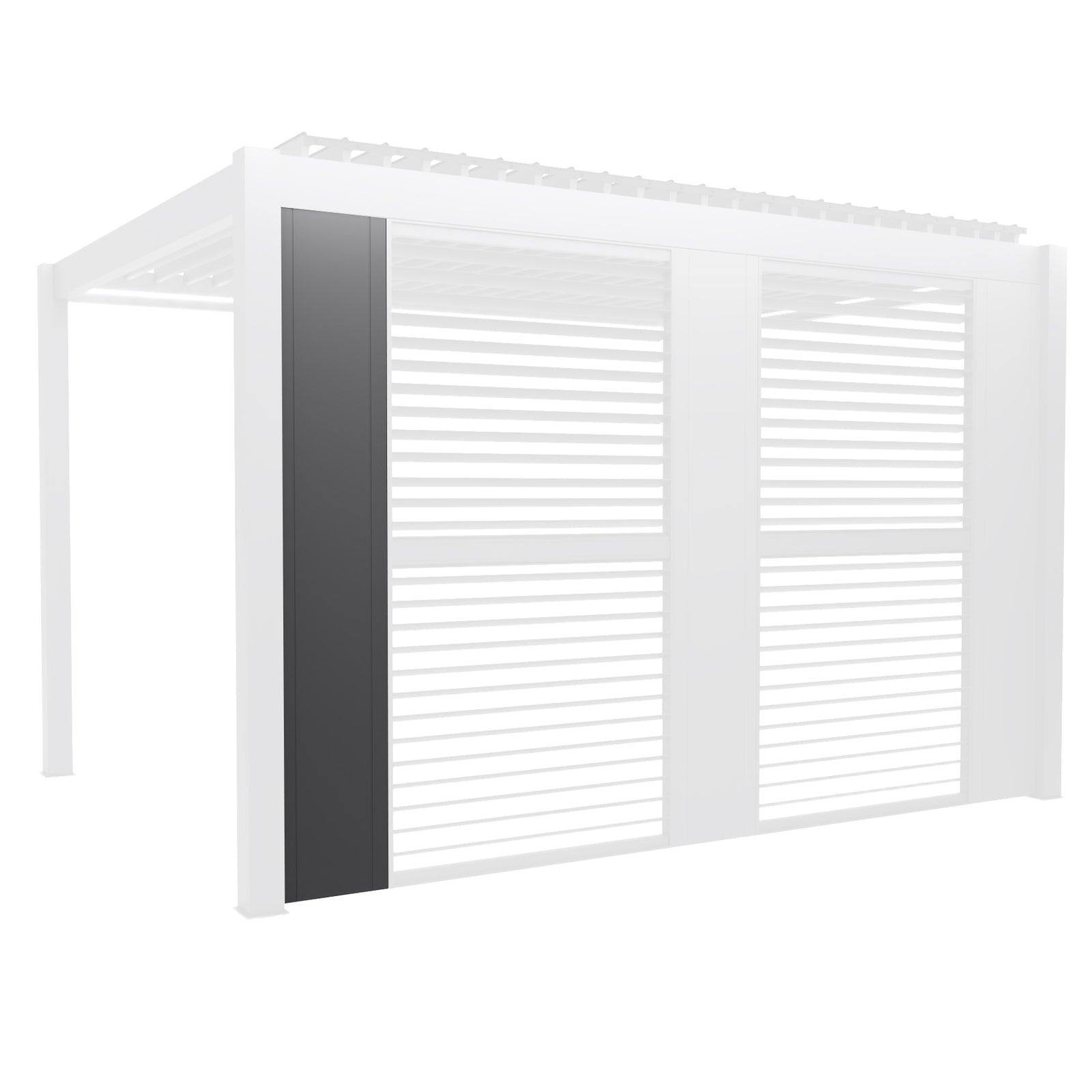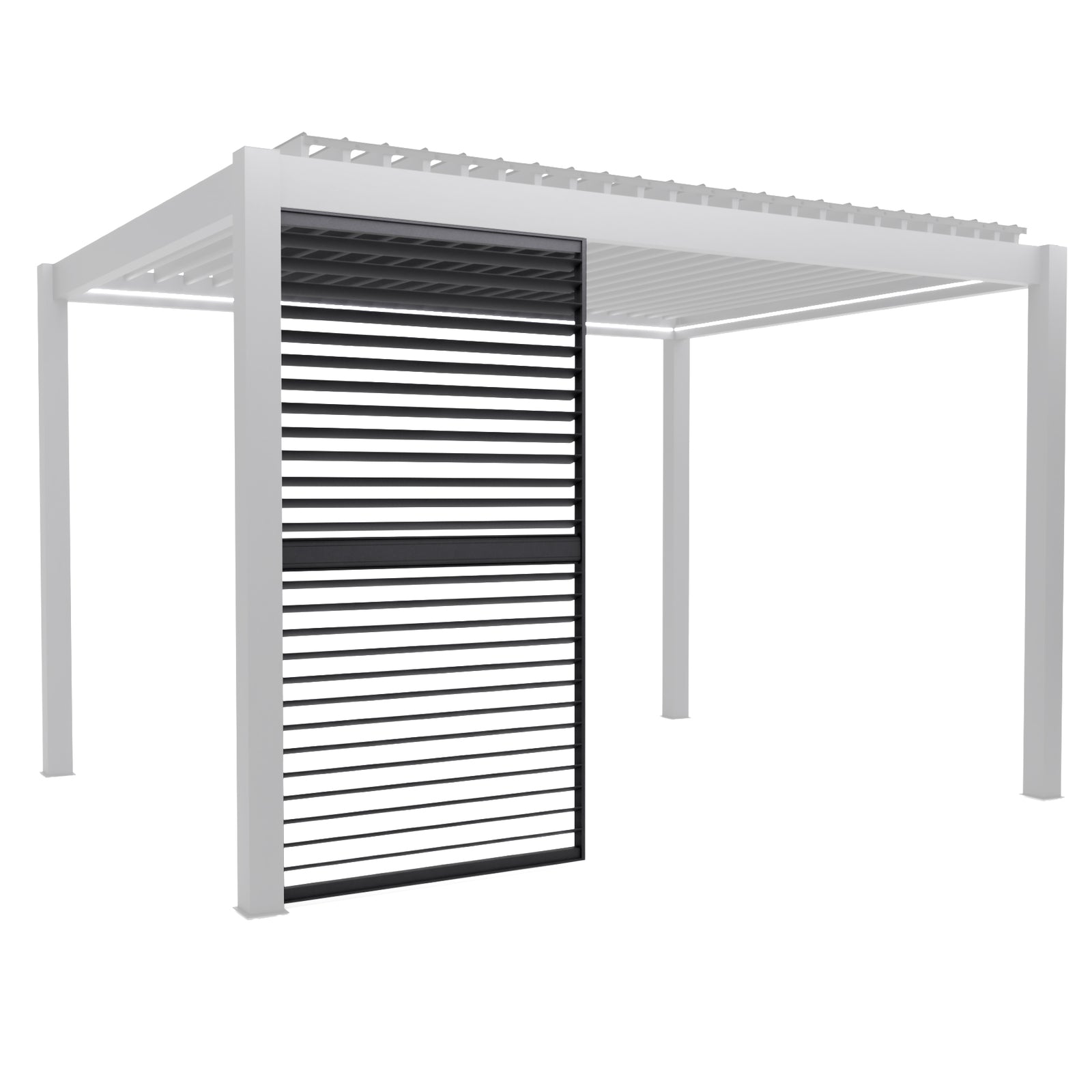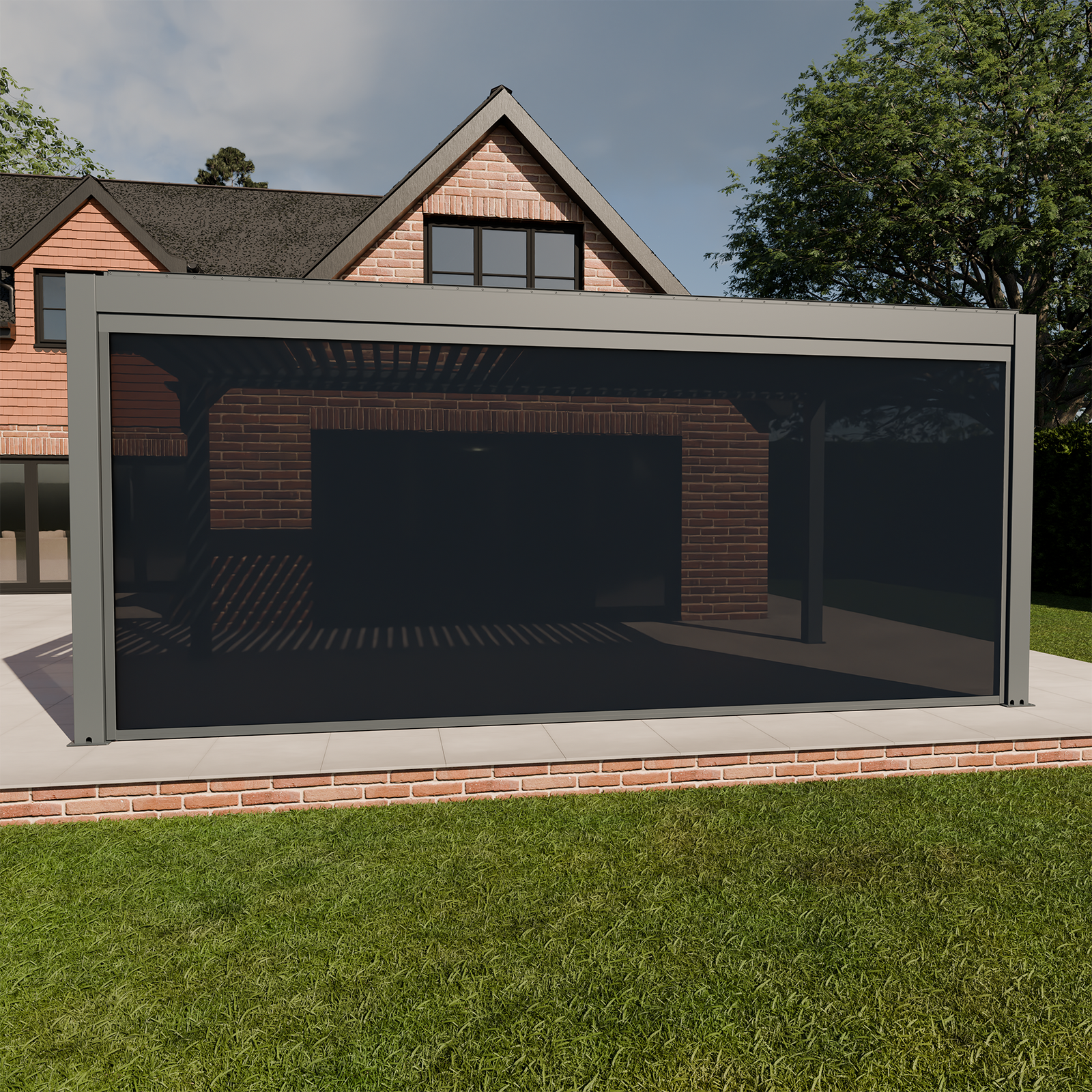 Full width blinds are available for the 3m amd 4m sides in anthracite and solid panels or louvre panels if you prefer something permanent, are available in anthracite or wood effect.