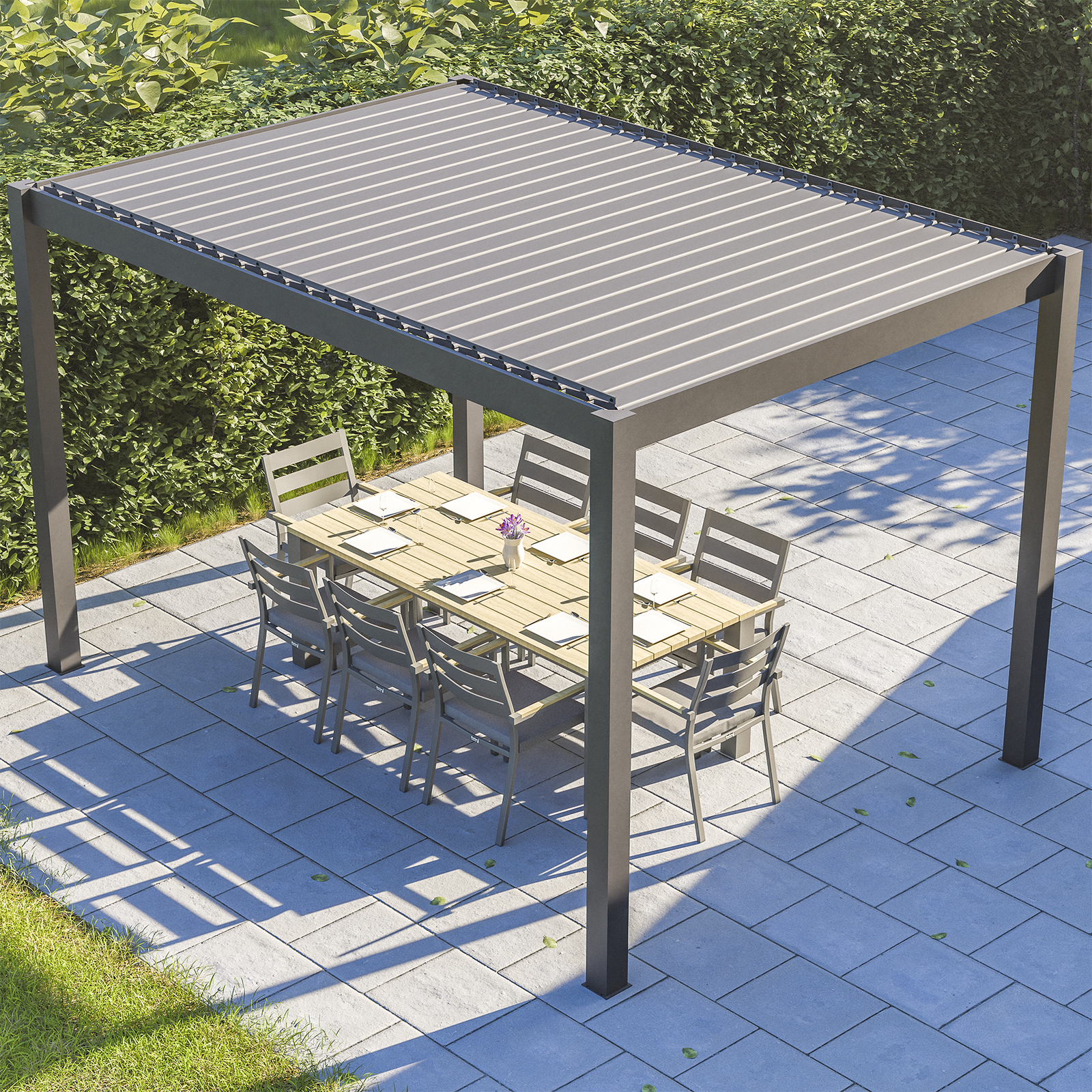 Our metal garden pergola collection includes pergolas with opening roofs, LED lights, extra side panels and our all electric model.