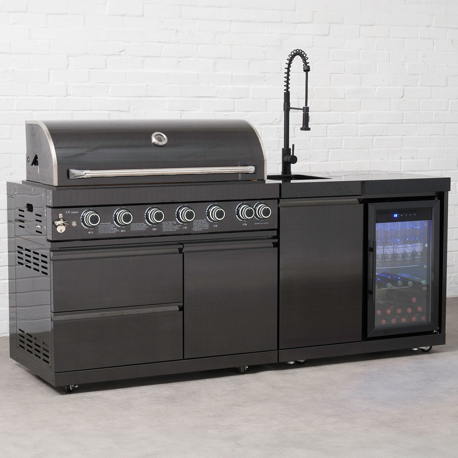 Draco Grills 6 Burner BBQ Black Stainless Steel Modular Outdoor Kitchen with Fridge and Sink Unit