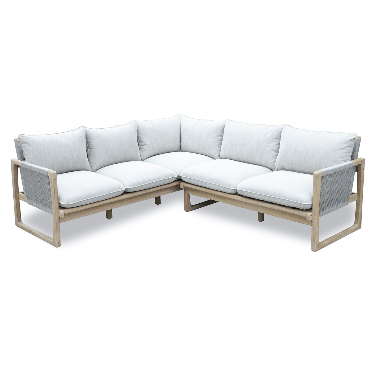 • 1x Acacia hardwood with light grey wash and rope square corner sofa with grey cushions