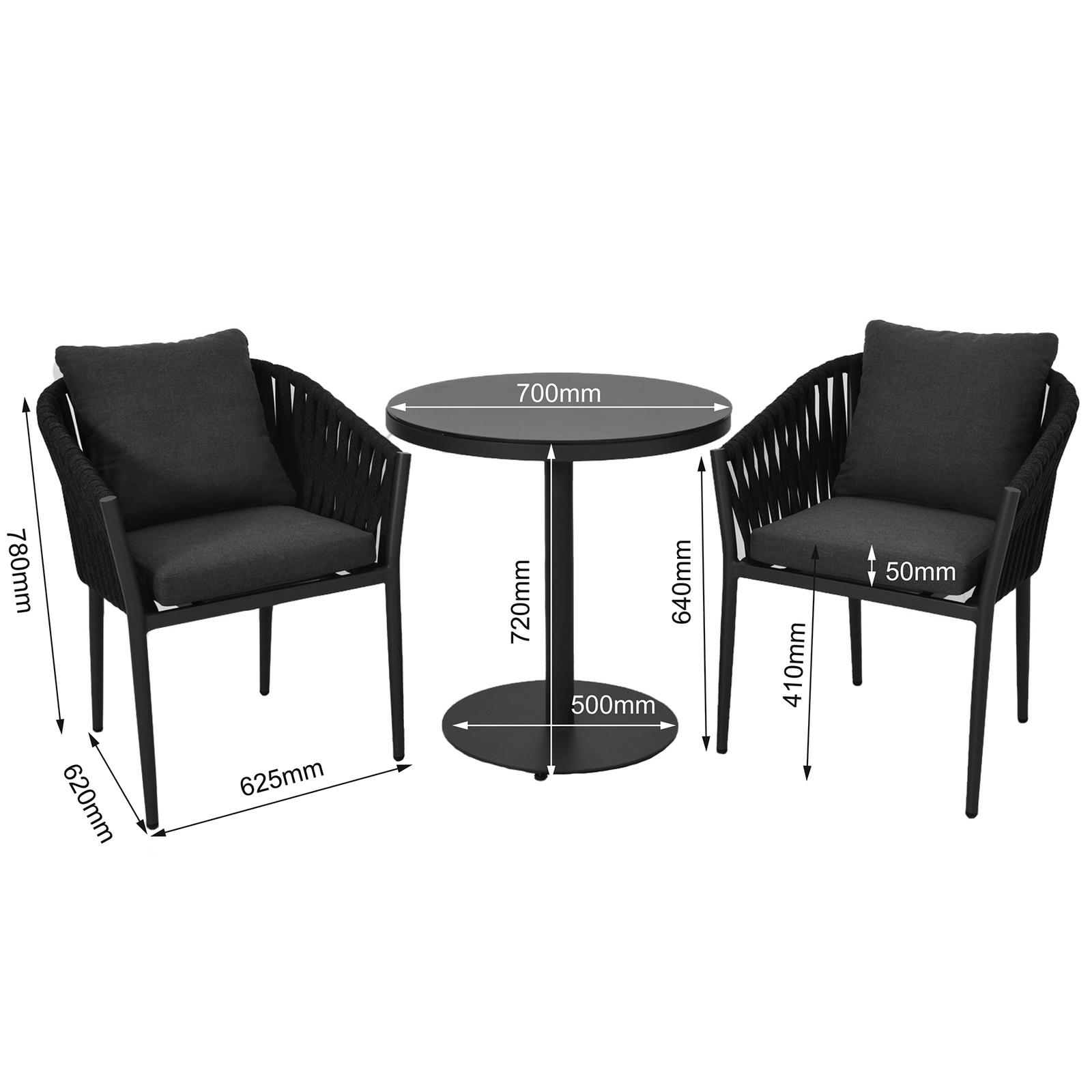 • The Bracken Outdoors Maldives 2 Seat Round Rope Chair Garden Furniture Bistro Set is the perfect companion to enjoy your garden. The set consists of two individual charcoal outdoor dining chairs and a round 70cm bistro table.