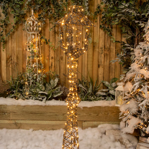 Light Up Christmas Lamp Post Lantern In Brown Weave with 170 White/Multicoloured LEDs - 1.5M