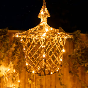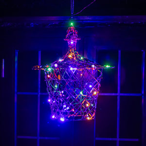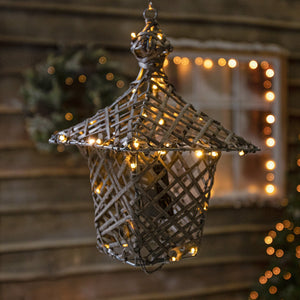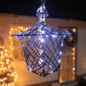 35CM Brown Weave Light Up Christmas Hanging Lantern with 40 Warm White and Multicoloured LEDs