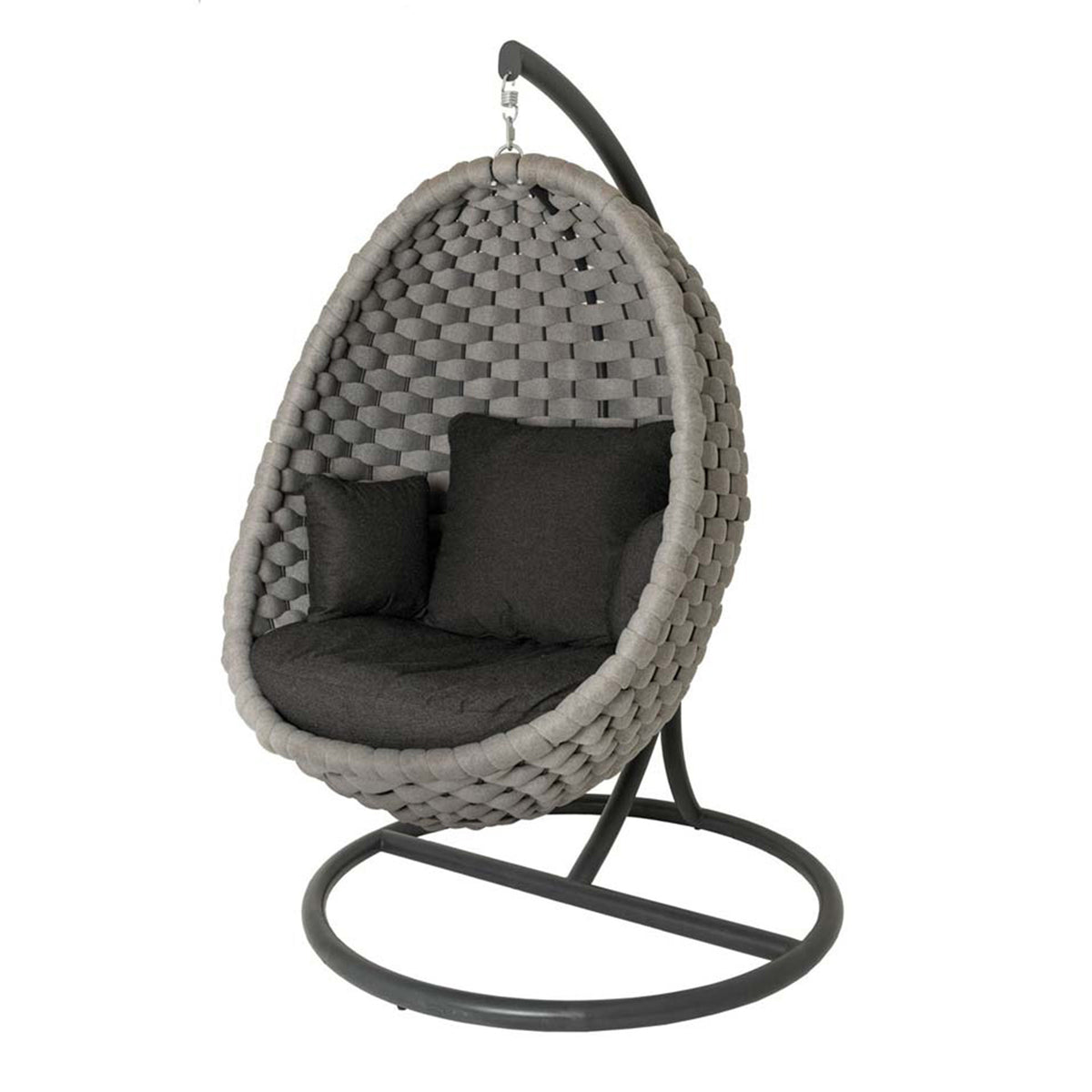 Suspended from a cantilever frame, this egg chair has a powder coated aluminium frame that provides all the strength it requires and is upholstered with a modern style basket weave to give the chair a contemporary appearance.