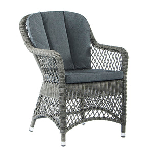 • The Alexander Rose Monte Carlo Open Weave Armchair with Cushion is an extremely durable garden armchair made with low maintenance 3mm Mid Grey round synthetic weave over a strong aluminium frame.