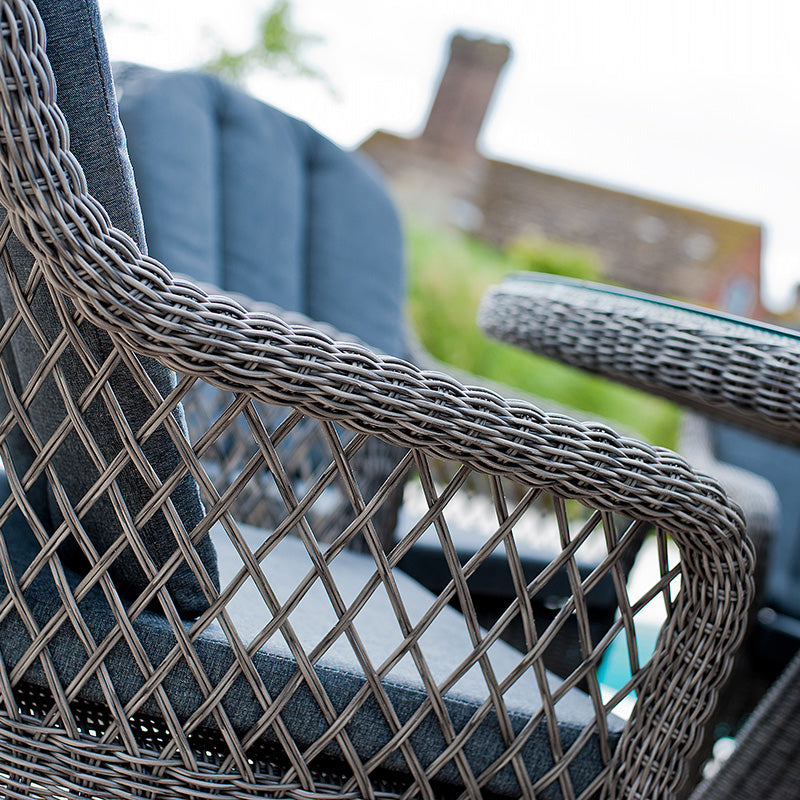 Each piece in this collection is constructed using frames made of strong and durable aluminium and 3mm synthetic grey rattan. Unlike genuine rattan, this trendy new fibre is suitable for use in your outdoor space all year long, allowing you to use your garden furniture whenever you like.
