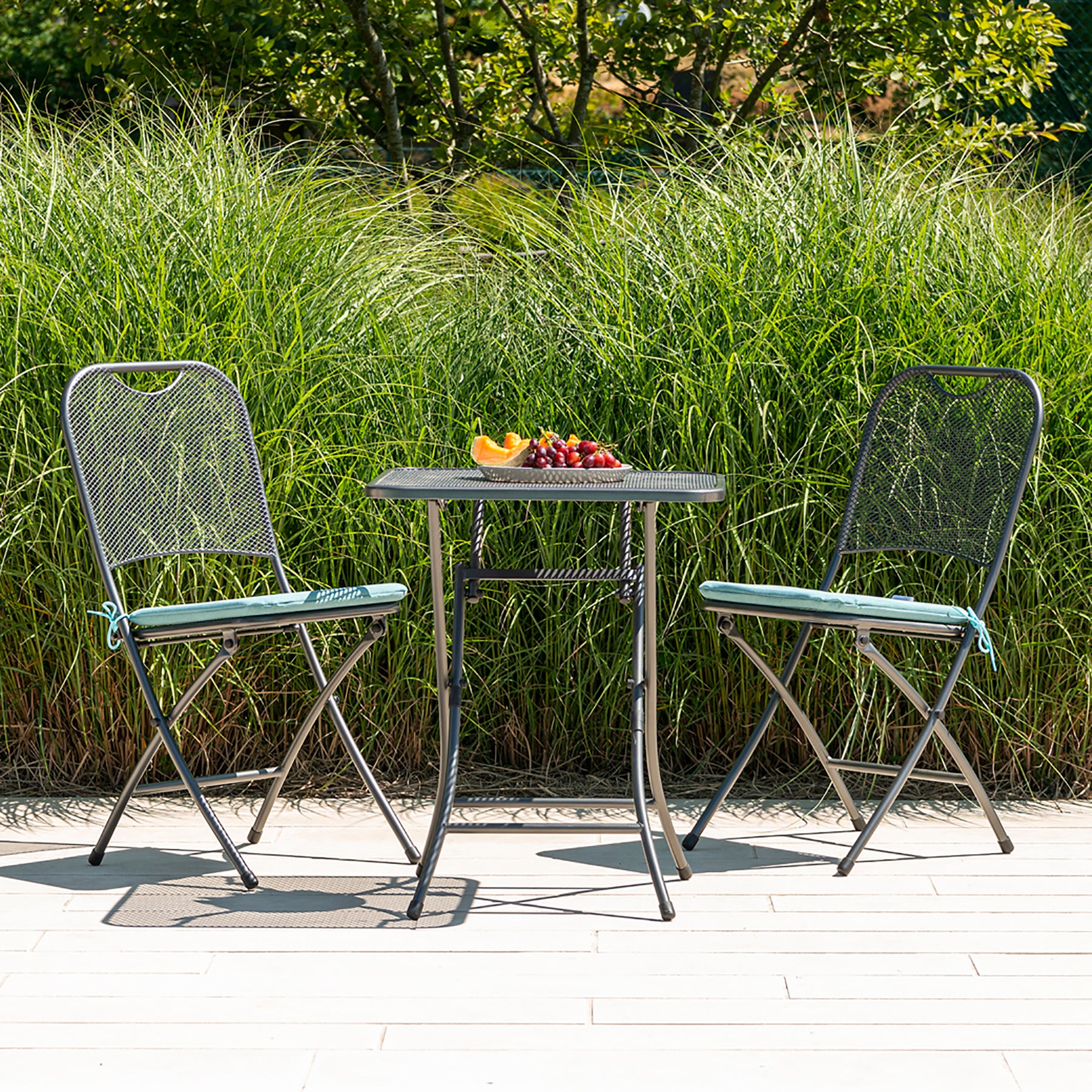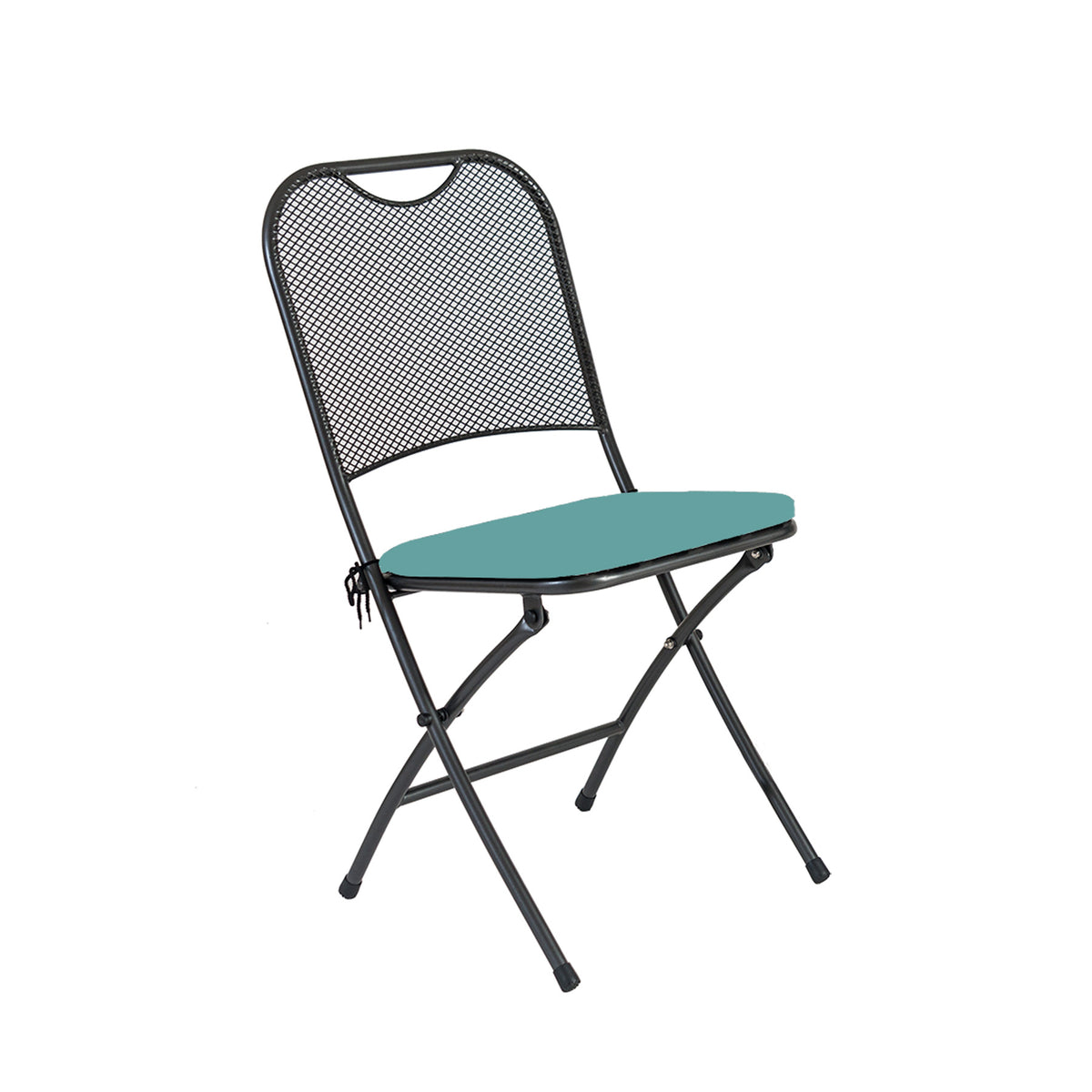 The Alexander Rose Portofino Tea for Two Folding Chair Cushion (Jade) is designed to complement the Portofino folding chair from the Alexander Rose Portofino Tea for Two Folding Set.